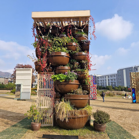 광장 안쪽으로는 여러 작가들의 일상의 벽이라는 여러 주제와 질감의 조형물들이 있는데 계속된 비로 잔디가 질퍽해서 가까이 가서 보기 어려웠다 11월 18일 까지 한다니까 한번더 가봐야겠다 잘 정돈된 산책길과 여러 종류의 꽃들과 구름과 바람과 버스킹 연주소리마저 더할 나위 없는 반나절의 힐링이었다 뛰쳐나간 나자신 칭찬함..
