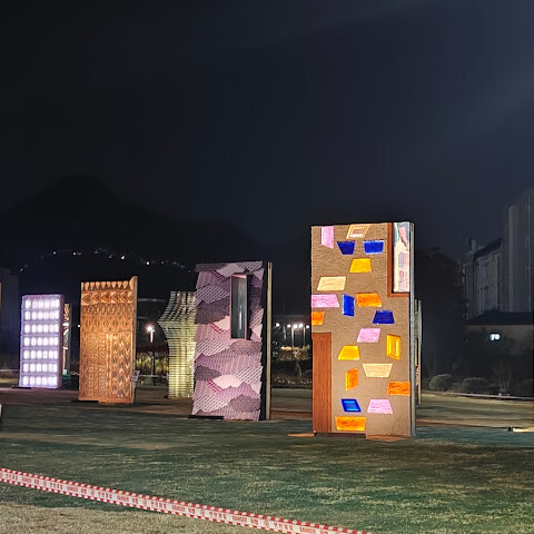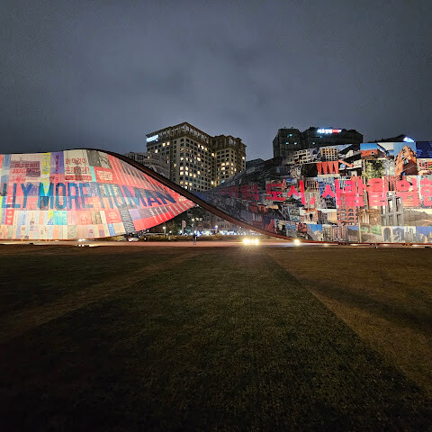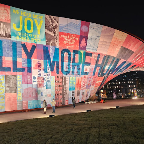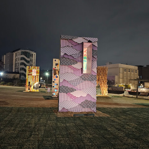 송현 녹지광장에 멋진 조형물이 눈에 띄어서 가봤더니 서울도시건축비엔날레 <휴머나이즈 월>이라는 설치작이었어요. 이십여개의 작은 벽 조형물도 너무 멋지네요. 낮에 다시 가서 보고 관람하고 싶어요!!