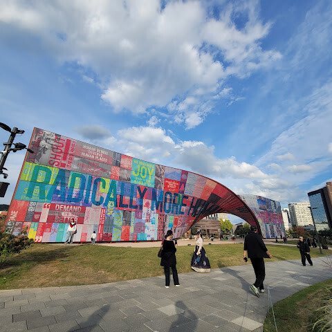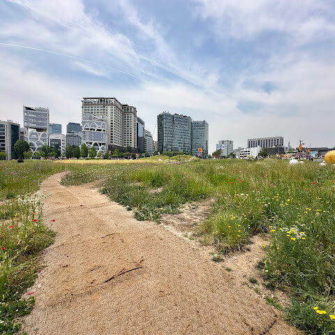 서울에선 흔하지 않은 탁트인 풍경의 녹지 광장입니다. 미술품과 예쁜꽃들이 많아 힐링하며 산책하기 좋습니다. 부지가 넓어 아이들이 뛰어 놀기에 좋아요. 다만 그늘이 없어 여름 한 낮엔 너무 더워요.