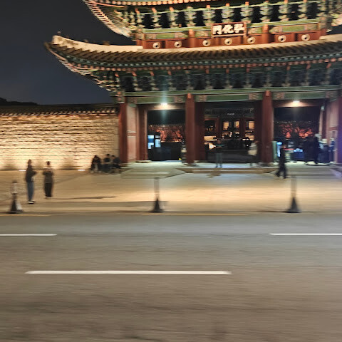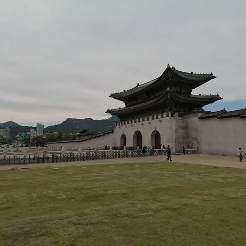 경북궁 근처의 열린 공간입니다. 잠시 쉴 수 있는 의자와 보기에도 멋진 장식이 마련되어 있습니다. 이곳은 너무 덥고 그늘도 전혀 없기 때문에 여름에 방문하기에는 적합하지 않은 것 같아요.