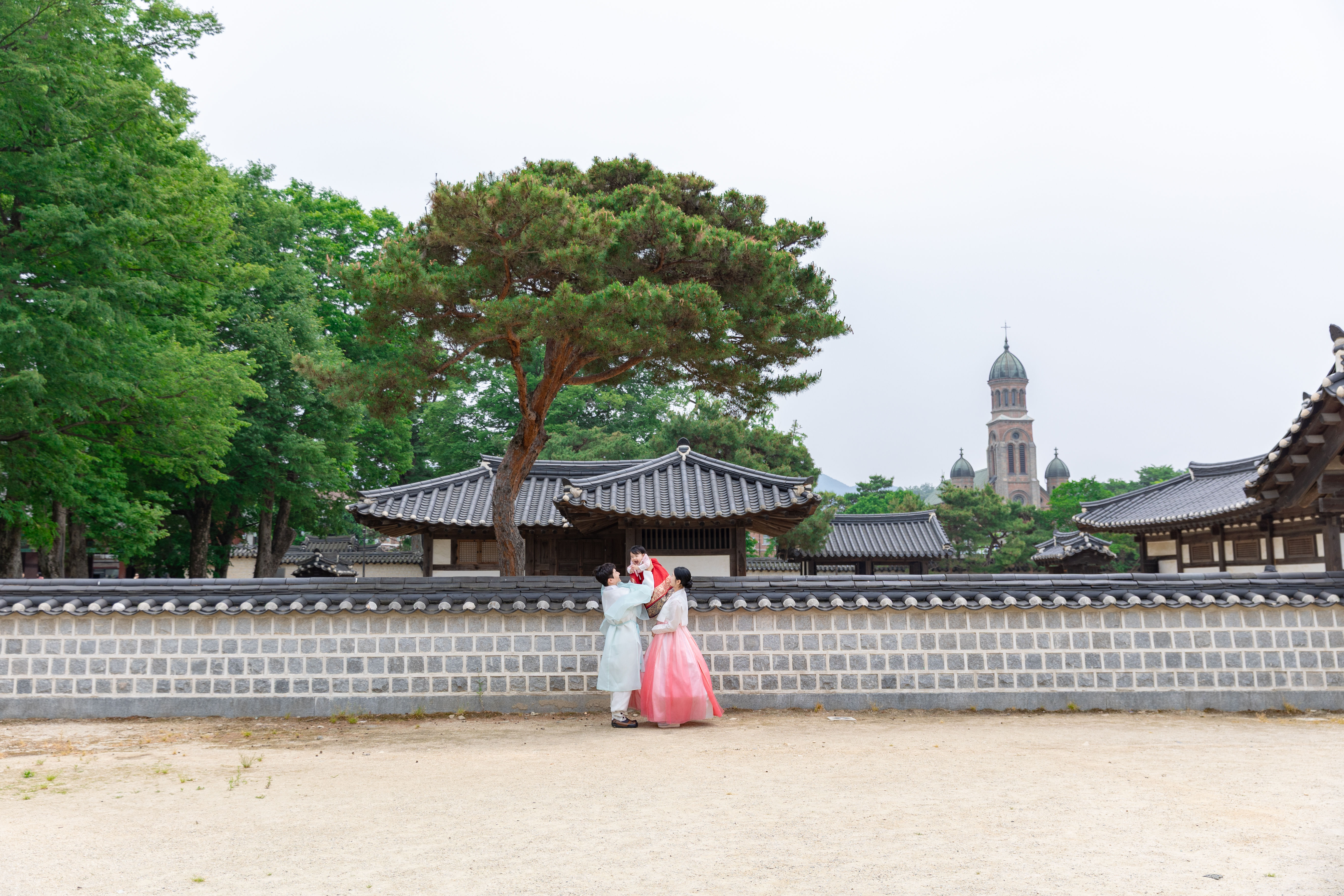 게다가 그날 날씨가 정말 푹푹 찌는 더위였는데도 찬원 씨는 침착하고 긍정적이며 전문적인 태도로 촬영 내내 저희를 이끌어 주셨어요. 아름다운 한국 전통 촬영지를 안내해 주셨고, 더운 날씨에도 불구하고, 그리고 저희 아이가… 뭐랄까… 평범한 세 살배기였음에도 불구하고 촬영 내내 즐겁고 편안한 분위기를 만들어 주셨어요!