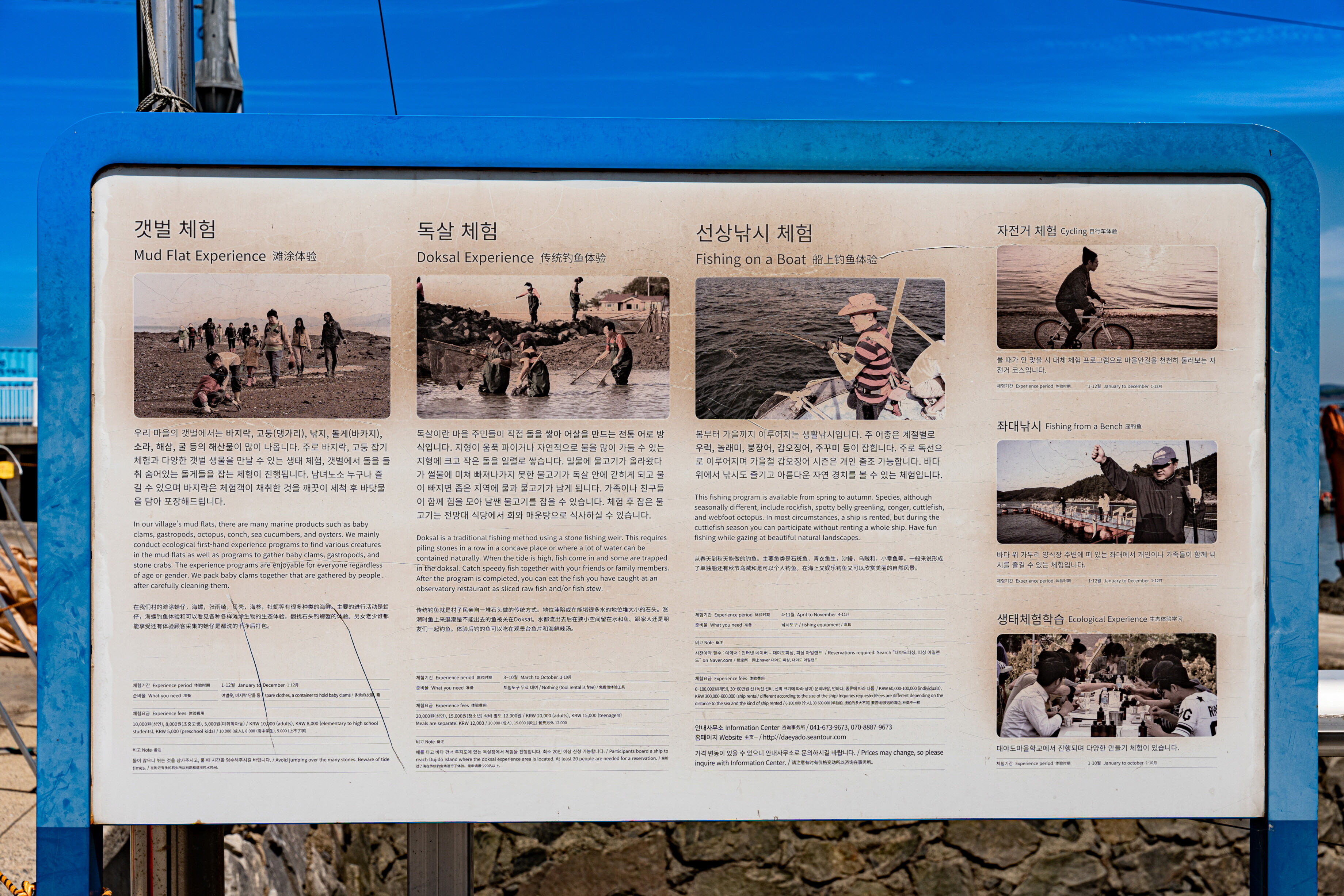 대야도마을은 자연과 체험, 전통과 문화가 공존하는 어촌마을이다. 안면도 동쪽의 천수만을 품고, 서쪽으로는 태안해안국립공원이 인접하여 울창한 송림과 넓은 갯벌이 보인다. 바닷가에서 갯벌체험, 선상낚시, 가두리낚시 등의 체험행사가 준비되어 있으며, 빼어난 자연경관을 자랑하는 해송 숲을 중심으로 7개의 펜션과 민박을 운영한다. 천상병 시인의 옛집과 전통 낚배 등 볼거리가 풍부하며 화가와 목공예가를 비롯한 예술인들이 마을에 거주하고 있다. 마을장터에서는 갑오징어, 낙지, 굴, 바지락 등의 해산물을 볼 수 있어 장터가 열릴 때 방문하는 재미도 있다.