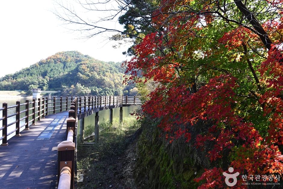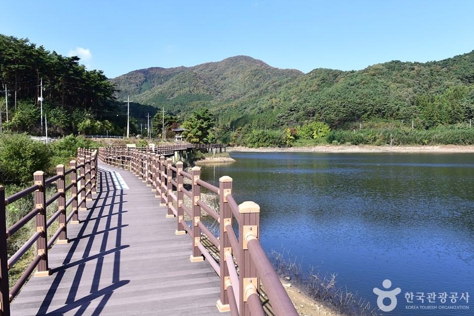 모암저수지 주변으로 한 바퀴 돌도록 조성되어 있는 수상 데크길은 그리 짧지도 지루할 정도로 길지도 않아 도보로 적당히 풍광을 즐기며 산책하기 좋은 코스로 어린아이들도 어렵지 않게 산책할 수 있다. 모암저수지 둘레길 뒤편으로 삼나무와 편백나무숲으로 빽빽한 둘레길도 함께 조성되어 있어 물 경치와 산경치를 한꺼번에 즐길 수 있는 곳이다. 데크 둘레길을 걷다 저수지 건너편을 바라보면 잔잔한 저수지 수면 위에 건너편의 산그림자가 비쳐서 그 경치가 평화롭고 아름답다. 또한, 저수지 주변으로 펜션이 있어 편안하게 1박을 하면서 모암저수지 즐길 수 있다. 국내 최대 규모의 인공조림지로 알려진 축령산 편백숲 일원에서 가을철이면 [편백산소축제]가 개최된다. 모암저수지 데크길을 따라 30~40분 정도 산림욕을 즐기며 걸으면 금빛휴양타운 앞 공터에 마련된 축제장까지 금세 도착한다. 축령산 편백산소축제는 군 홈페이지와 보도자료를 통해 개최시기를 공지한다.