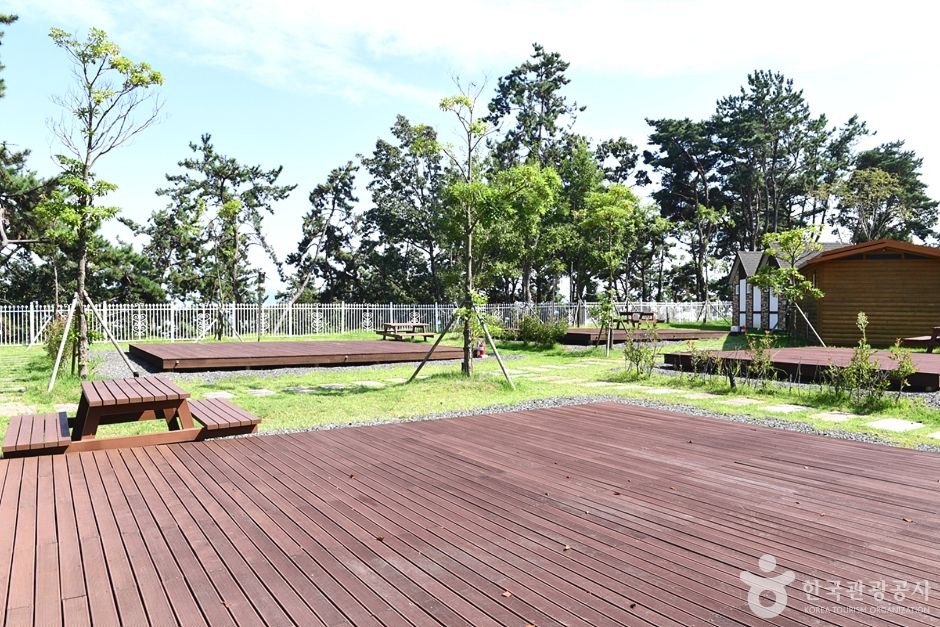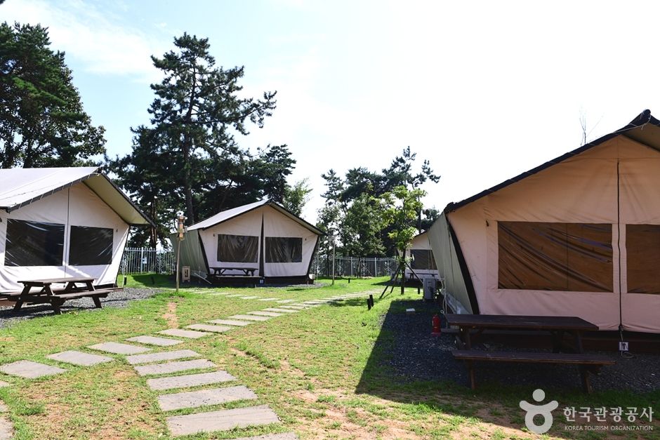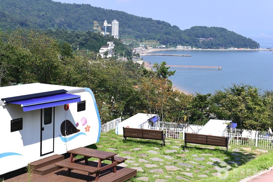 일몰 전경과 수문해수욕장 야경을 즐기며 1박 야영을 할 수 있다. 4명 기준으로 이용할 수 있으며 기준정원 초과 시 추가비용이 발생한다. 장흥군에서 직접 운영하며 카라반 7동, 글램핑 4동, 캠핑데크 15개로 구성되어 있다. 각 캠핑 사이트마다 배전함, 소화기, 해충퇴치기가 설치되어 있다.