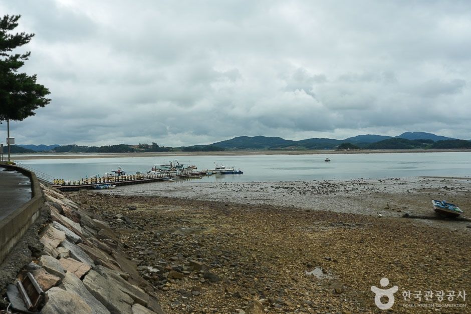 그중 4코스는 새섬리조트~호안·임도~청산포구~갈두천(풍천교회)로 이어진다. 섬의 모양이 만조 때는 자라, 거북 등과 같고 간조 때에는 3발자라와 같은 새섬에서 출발해 과거 정기여객선이 운항했던 청산나루터, 자연 친화적 농촌마을인 갈두천마을 등을 둘러볼 수 있다. |