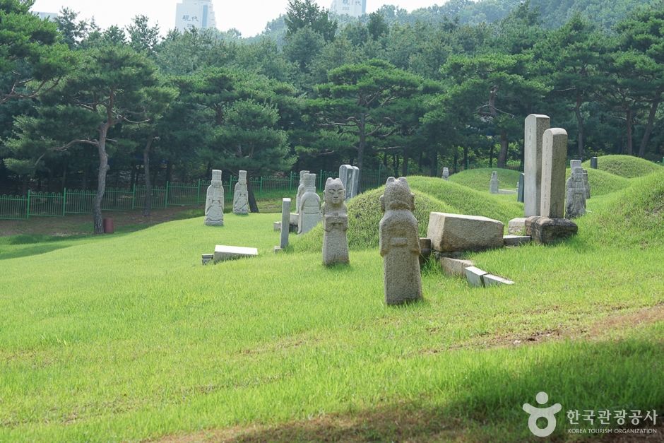 영신공원은 소나무가 숲을 이루고 주변이 잘 조성되어 있어 근린공원으로서의 역할을 하고 있으며, 이이의 묘역에는 묘갈(죽은 이의 이름을 새긴 표지석)과 석물들이 배치되어 있어 조선시대 왕실제사나 문화연구에 귀중한 자료이다.