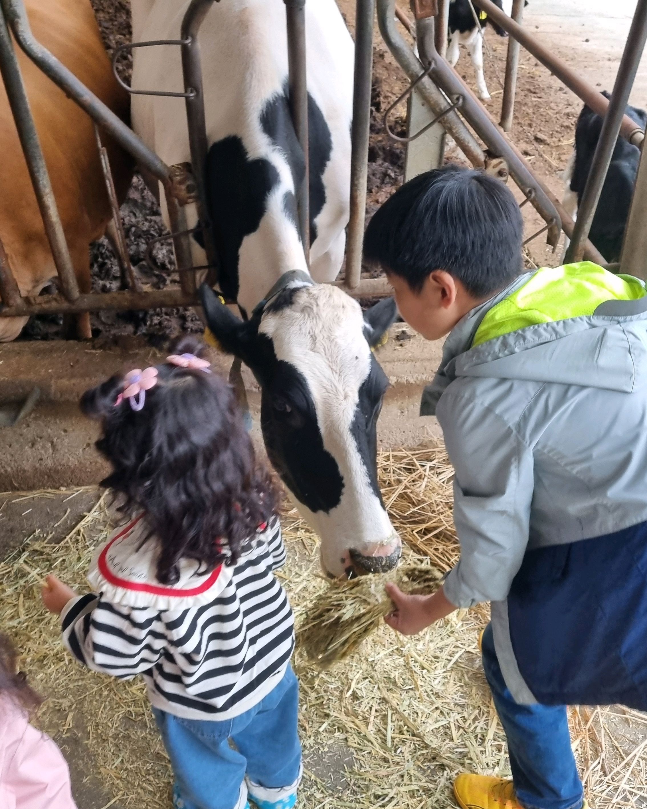오후 2시부터 5시까지 진행된 체험은 엄마·아빠·아이 모두 함께하는 미니 운동회로 시작해, 젖소에 대해 배우고 퀴즈도 풀며, 치즈와 피자를 직접 만들어 먹는 시간, 소 젖 짜기·풀 주기·송아지 우유 주기 등 다채로운 프로그램으로 가득했습니다. 시간이 어떻게 지나갔는지도 모를 만큼 알차고 즐거웠습니다 :)