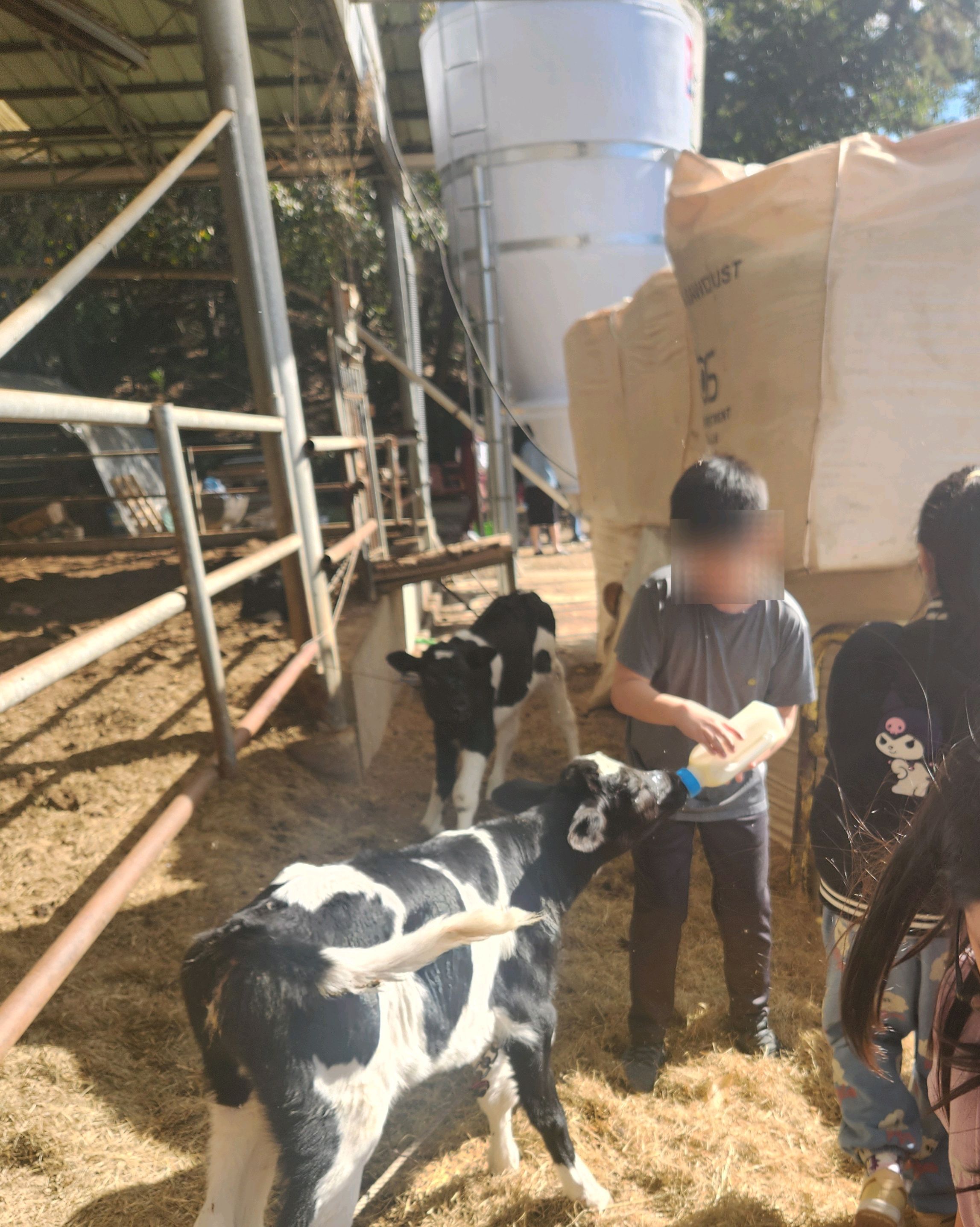 젖소 먹이주기, 송아지 먹이주기도 아이들이 너무 재미있어했어요.
