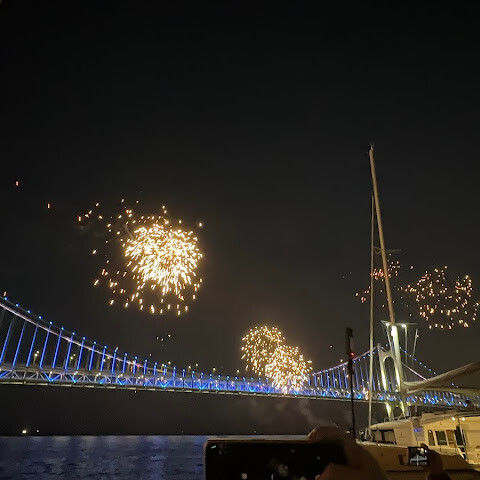 야간 조명들과 광안대교 야경이 너무 예뻤고 광안대교 쪽에서 여러 요트에서 동시에 불꽃놀이를 하는데 정말 좋았습니다!