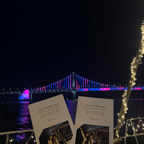 부산 여행 중 가장 좋았던 순간이에요! 야경이 정말 아름답고 직원들도 정말 친절해요. 요트 위에서 단체 사진도 예쁘게 찍어주고, 광안리/하우엔대 지역에 묵으시면 셔틀버스도 있어서 편하게 집으로 갈 수 있어요. 강력 추천합니다!