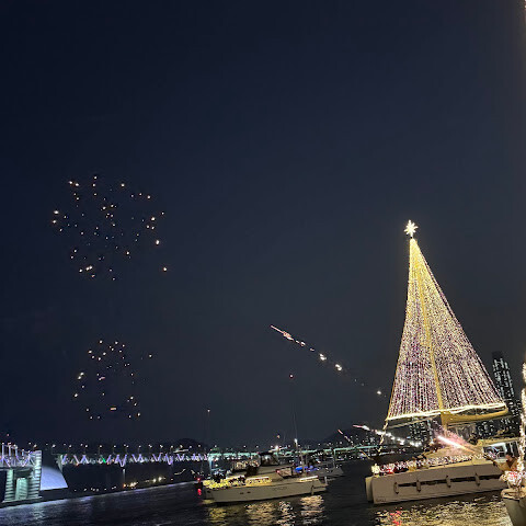 정말 즐거운 시간을 보냈습니다. 바다 위에서 다른 요트들과 함께 폭죽을 터트릴 때 마치 영화 속 한 장면 같았어요.
