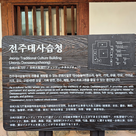 전주 한옥마을 안에 위치한 전주대사습청은 전주대사습놀이의 전통을 체험할 수 있는 문화시설로 대사습놀이(판소리, 농악, 기악, 무용, 민요, 가야금, 시조, 궁도, 고법)와 관련한 공연을 전수하고 체험과 전시 프로그램을 즐길 수 있는 곳이다. 또, 조선 숙종 때부터 시작된 전주대사습놀이의 역사와 전통을 보전하고 지역의 전통문화를 발전시키는 역할도 맡고 있다. 기존의 전주소리문화관 부지(1315㎡)에 건물 면적 486㎡ 규모의 지상 1층 건물로 건립되었으며 공연과 세미나가 열리는 대청마루, 국창 오정숙 기념관, 전주대사습놀이의 전통과 유례, 역사를 소개한 전시관, 연습실, 연못정자(관광객 쉼터) 등을 갖추고 있다.