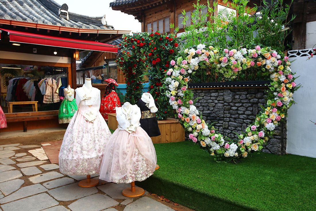 방문하기 전에 미리 어떤 컨셉의 의상을 착장할지 정하고 가는 것이 좋다. 한옥마을은 어디를 배경으로 해도 아름다운 인생 사진을 남길 수 있을 만큼 아름다워 아이와 함께 여행 중인 가족이나 친구와 연인들이 소중한 추억을 만들기에 안성맞춤이다. 인근 포토존 명소로는 경기전, 오목대, 전동성당, 마시랑게 카페 등이 있다.