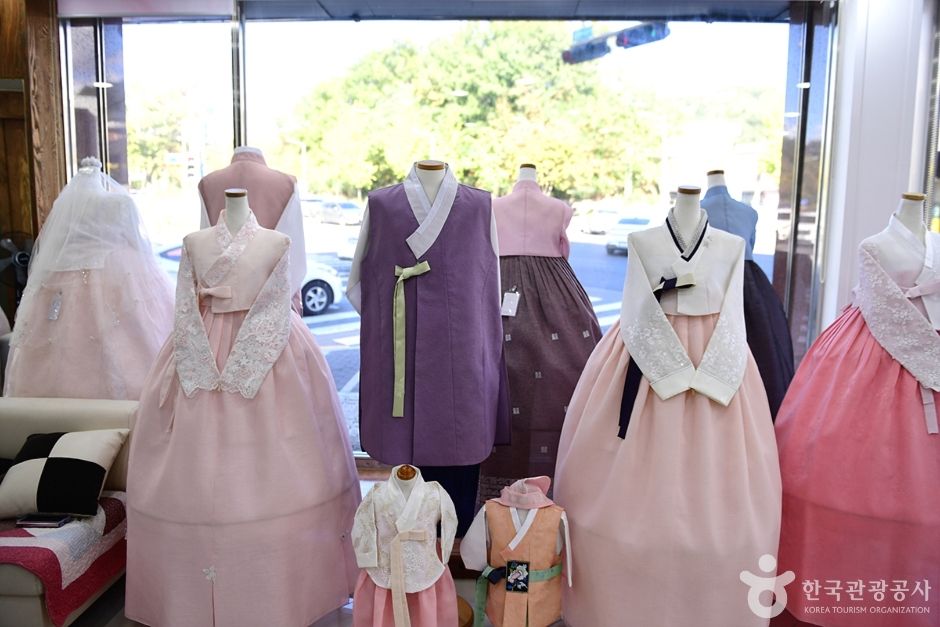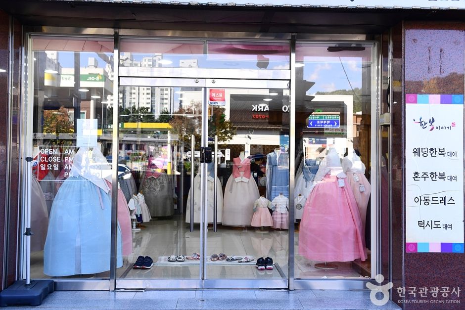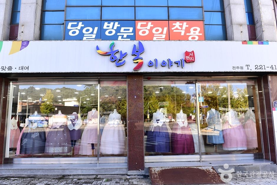 한복이야기는 전북 전주시 완산구에 위치한 한복 대여점이다. 이곳은 결혼식 한복 전문점으로 한복 맞춤, 대여, 예단 등의 혼수와 웨딩 한복, 돌잔치 한복, 화동 한복 등이 있다. 특히 혼주 한복은 단아한 디자인에 색감이 아름답기로 입소문이 많이 나 있어 다른 지역에서도 찾아오곤 한다. 한복이야기의 한복은 유행을 타지 않는 고급스럽고 우아한 한복이 많으며 이용자의 취향과 상황, 장소를 고려한 딱 맞는 스타일링으로 한번 찾았던 사람들의 재방문이 이어지는 곳이다. 한복을 대여하면 가방과 신발, 액세서리까지 무료로 제공받을 수 있으며 대여 기간은 결혼식의 경우 대여와 반납 기간을 2박 3일 정도로 넉넉하게 준다. 한옥마을과 4km 거리에 있어 야외 웨딩촬영을 하기에도 무리가 없다. 여유 있는 피팅을 위해 예약 후 방문하는 것을 추천한다.