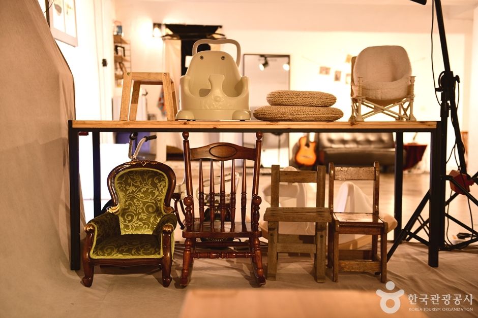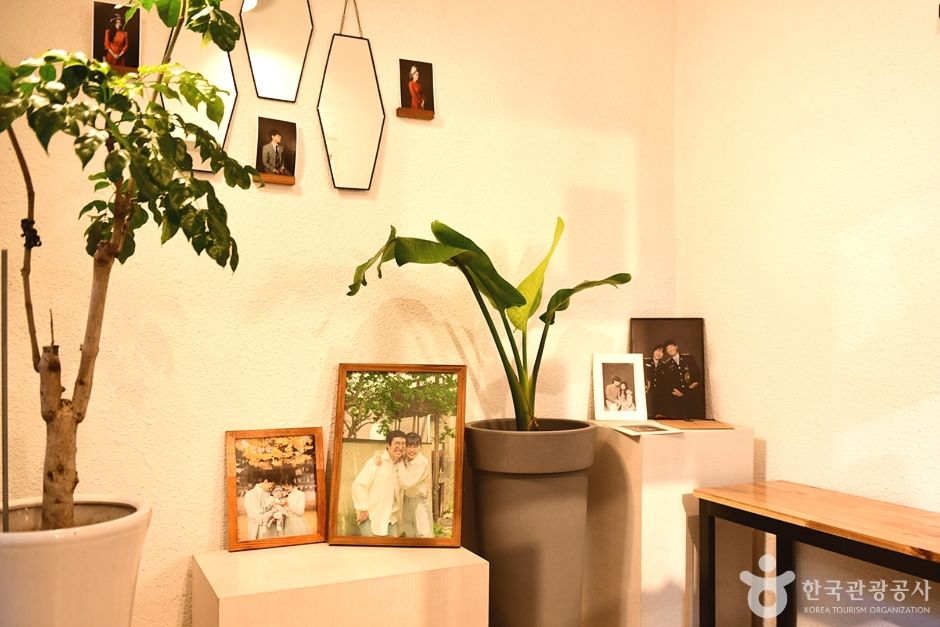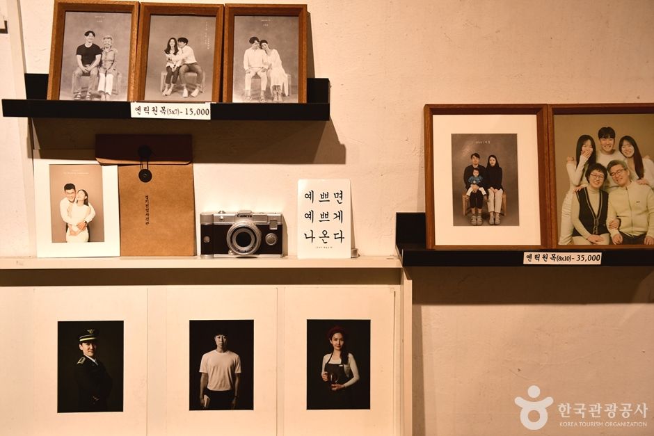 지하 1층에 마련된 사진관은 아늑한 공간을 채우는 감성적인 인테리어로 대기하는 동안 셀프 촬영하는 재미도 있다. 경기전 옆 사진관은 베이지, 다크, 라이트의 세 가지 컨셉으로 촬영을 진행한다. 베이지 컨셉은 따뜻한 톤의 사진으로 15분 동안 100컷 정도의 촬영이 이루어지며, 다크 컨셉은 8분간 50컷으로 묵직하고 고급스러운 느낌의 사진을 원하거나 오래 두고 남기고픈 흑백 사진 촬영이 진행된다. 라이트 컨셉은 3분에 대략 20컷으로 빠른 속도로 진행되는 촬영과 밝고 가벼운 느낌의 색감을 원하거나 부담 없이 찍고 싶을 때 이용하기에 좋다. 세 종류 모두 기본적인 보정 작업이 이루어지며 현장에서 인화까지 이루어져 바로 사진을 받아볼 수 있다. 숙련된 사진 기사의 노하우로 진행되는 촬영은 시종일관 편안한 분위기에서 자연스러운 연출을 유도해 기대 이상의 만족스러운 사진을 남길 수 있다.