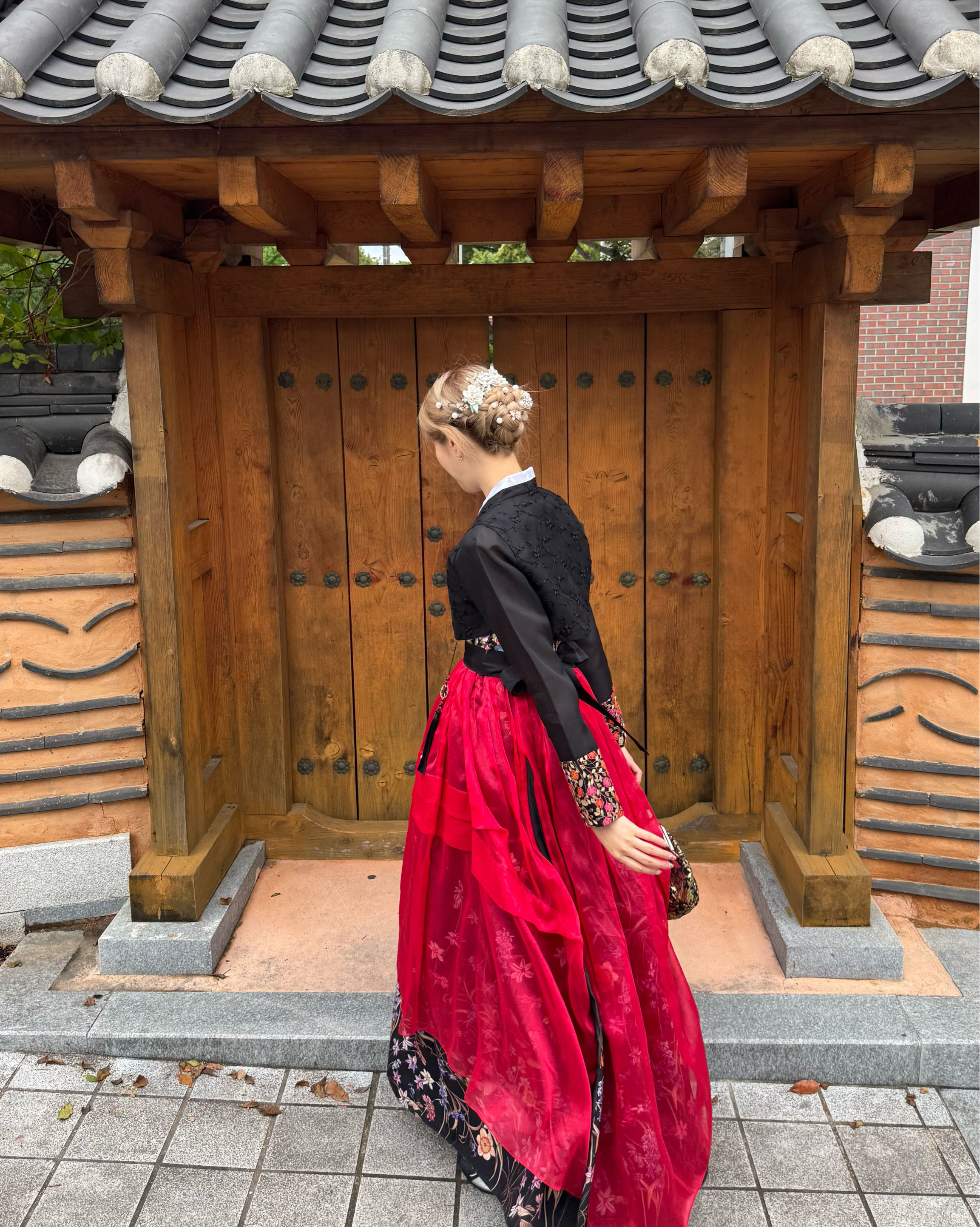 한복이 다양하고 너무 예뻐요! 머리도 원하는 스타일대로 세팅해주시고 장식 아낌없이 촥촥 꽂아주시는데 너무 좋았습니다. 매장도 한옥마을 입구에 있어서 대여 반납이 매우 편리해요! 점원 분들도 매우 친절하셔요! 한복 뿐만 아니라 옛날 교복? 교련복? 그런 것도 있어서 중장년분들도 추억 삼아 대여하기 좋을 거 같아 보였습니다. 여러 한복 대여점 많은데 다음에 오면 또 여기 방문할 거예요!🤩