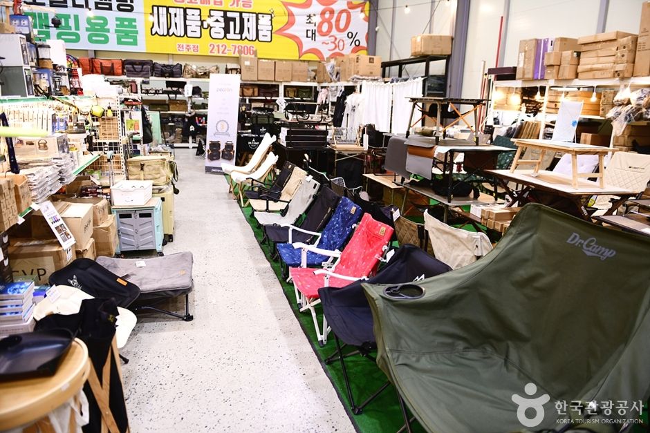 매장 안에는 다양한 캠핑 장비가 전시되어 있고, 중고품뿐만 아니라 신품 구매도 가능하다. 창고형의 큰 규모로 운영되고 있고, 전국에 매장이 32곳이나 있어 많은 캠핑 입문자들이 찾는 곳이다. 텐트를 포함하여 침낭, 롤 테이블, 수납 가방, 숯, 취사도구 등 기본적인 제품 외에도, 일반적이지 않은 상품까지 알차게 전시되어 있다. 더욱이 가격은 온라인보다 저렴하다. 매장 홈페이지에서 어떤 제품이 입고되었는지 수시로 확인할 수 있으며 선착순으로 판매하는 만큼 먼저 예약한 사람이 인기 있는 상품을 저렴하게 살 수 있다.