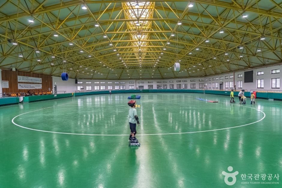 강릉시 인라인스케이팅장은 수용인원 500명, 경기장 트랙 125m의 시설 규모이고, 부대시설로는 관람석, 음향시설, 야간조명, 전광판 등이 있다. 강릉 실내빙상장(강릉컬링센터) 앞에 내리면 스케이트장 입구를 알려주는 표지판이 있어 잘 쫓아가면 지하 1층 인라인스케이트장이 나온다.