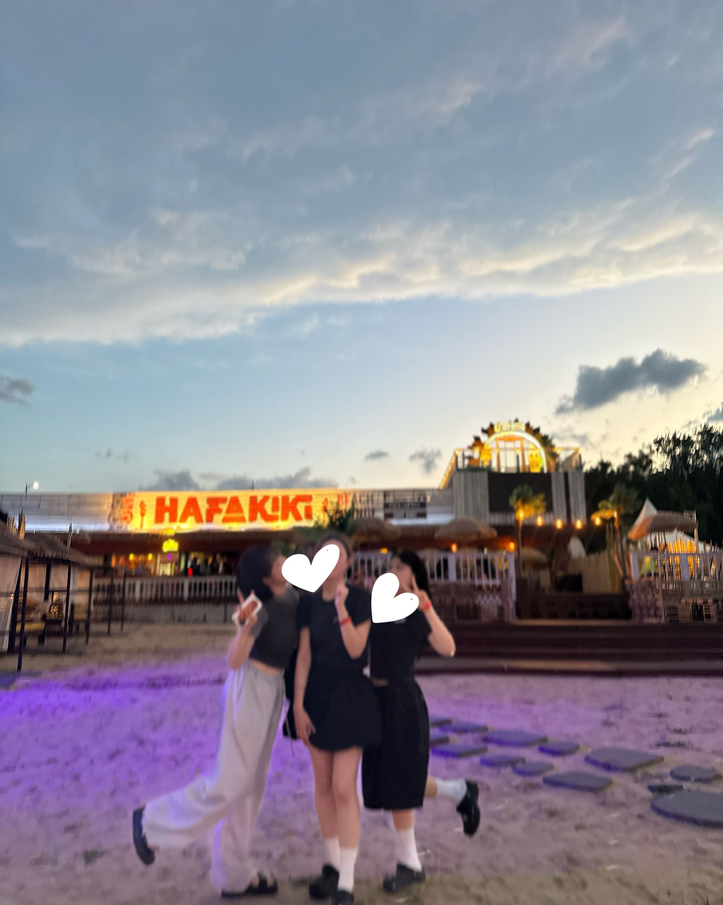 해질 무렵엔 해변에서 파티 분위기 미쳤구우 노을을 배경으로 조명이 켜질 때의 무드 댑악이었어요오 🌅✨