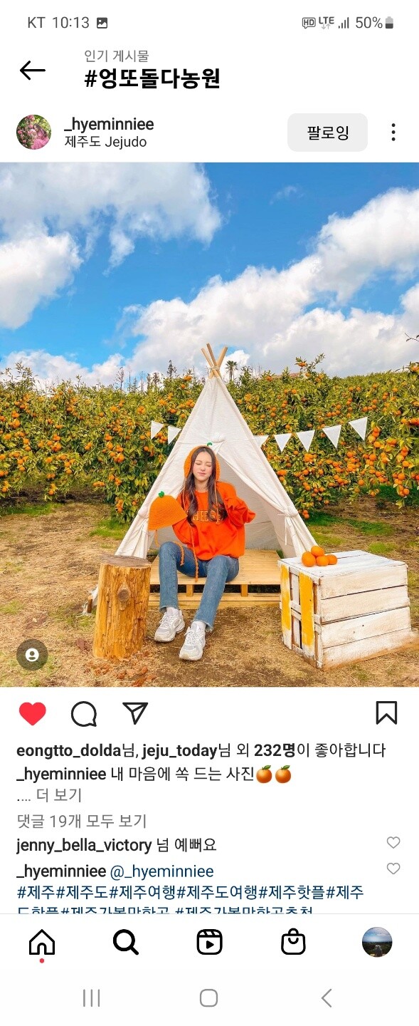 넓은 농원 안에는 다양한 포토존이 있어 귤따기 체험을 하며 귤밭에서의 추억을 남길 수 있다. 감귤따기 체험시 귀여운 감귤모자와 감귤컨셉의 소품들을 무료로 대여해준다. 포토존은 체험객이 아니더라도 무료로 이용가능하다. 카페에서는 커피와 귤을 이용한 음료 등을 판매하며 귤과 제주특산품 등을 판매하고 있다. 제주올레길 7 -1코스와도 가까워 올레길을 걷다가 잠시 들려도 좋다. 귤 수확시기인 10월말부터 1월말까지 유동적으로 운영하므로 사전에 운영 여부를 확인하고 방문하는 것이 좋겠다.