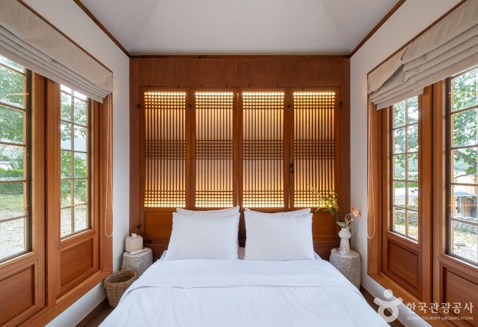 율시헌은 자암산이 뒤를 감싸고 작은 강이 흘러가는 곳에 자리한 독채 한옥입니다. 넓은 마당을 지키고 있는 100년 된 밤나무의 ‘율’, 감나무의 ‘시’의 글자를 따와 율시헌이라는 이름을 가지게 되었는데요. 자연 속 한옥에서의 하룻밤은 피로를 풀며 마음의 안정을 취할 수 있는 편안한 안식처가 됩니다.