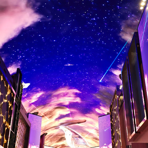 150m 길이의 LED 캔버스 오로라(Aurora)는 끊임없이 숨 막히는 시각적 경험을 선사하며, 대형 키네틱 샹들리에의 끊임없이 변화하는 패널은 다양한 그래픽을 구현하여 매혹적인 시각적 경험을 선사합니다.