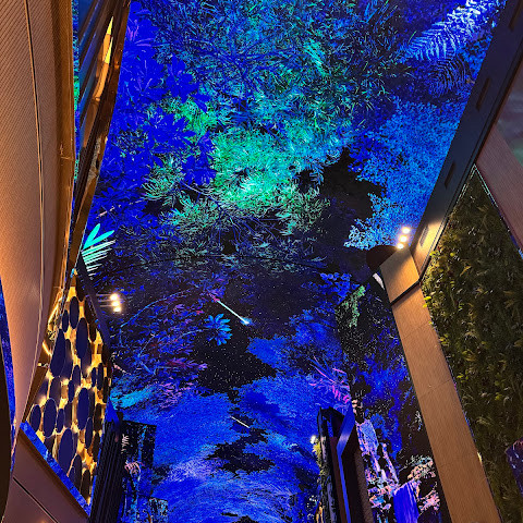 150m 길이의 LED 캔버스 오로라(Aurora)는 끊임없이 숨 막히는 시각적 경험을 선사하며, 대형 키네틱 샹들리에의 끊임없이 변화하는 패널은 다양한 그래픽을 구현하여 매혹적인 시각적 경험을 선사합니다.