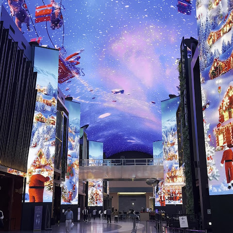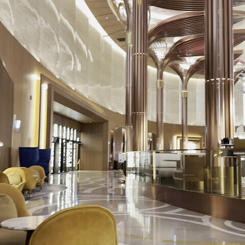 150m 길이의 LED 캔버스 오로라(Aurora)는 끊임없이 숨 막히는 시각적 경험을 선사하며, 대형 키네틱 샹들리에의 끊임없이 변화하는 패널은 다양한 그래픽을 구현하여 매혹적인 시각적 경험을 선사합니다.