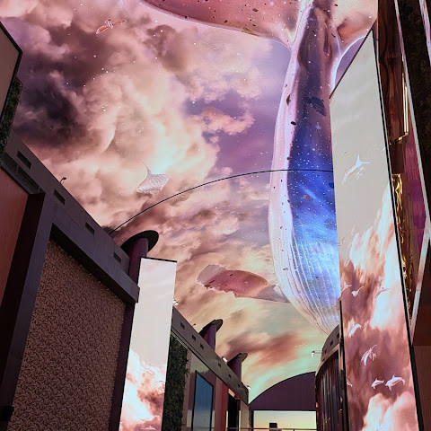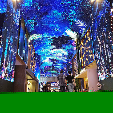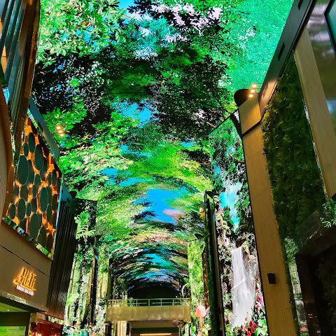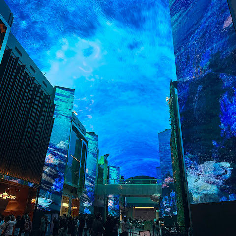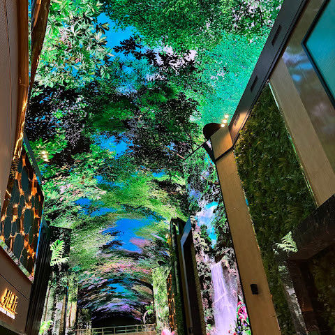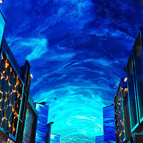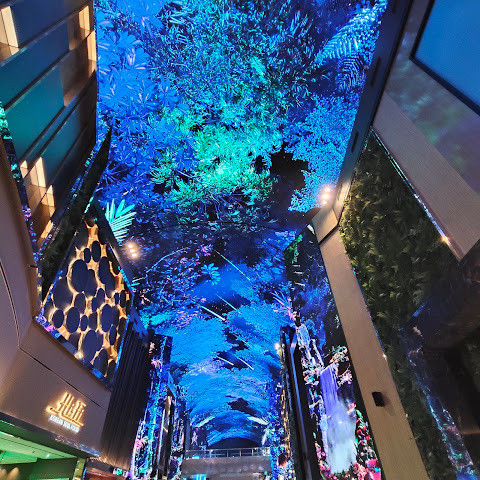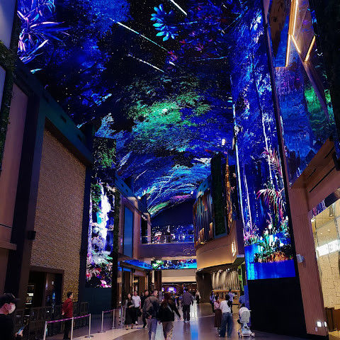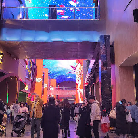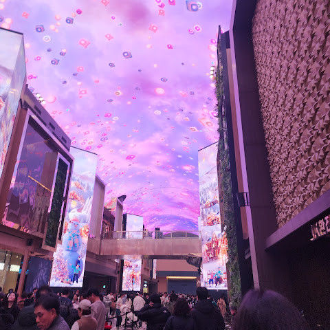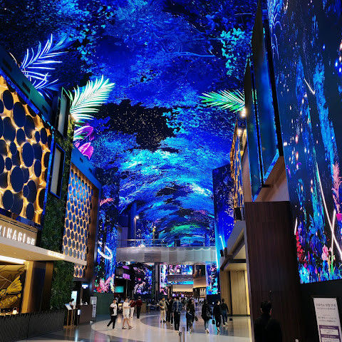 주말에는 사람이 너무 많습니다. 그래도 관광 오시는 분, 투숙하시는 분 차별없이... 150m에 달하는 통행로 벽면과 천장을 화려한 영상으로 수놓은 디지털 엔터테인먼트 거리 ‘오로라’ 환상적인 분위기를 볼 수 있는 점 좋습니다.