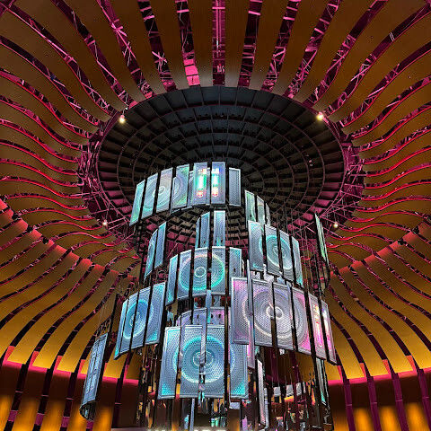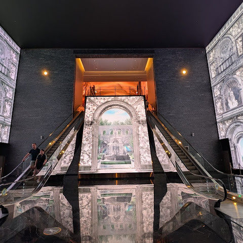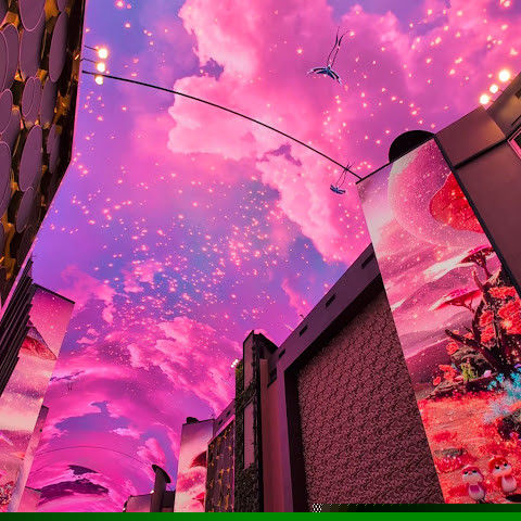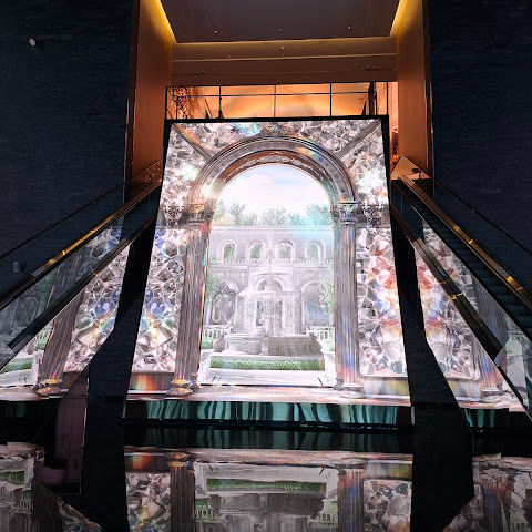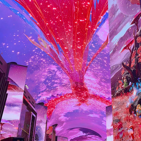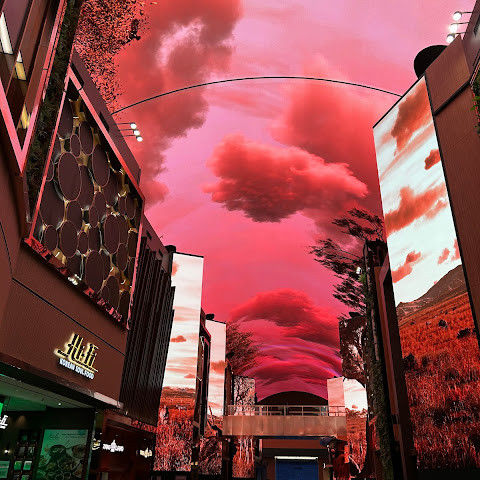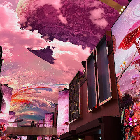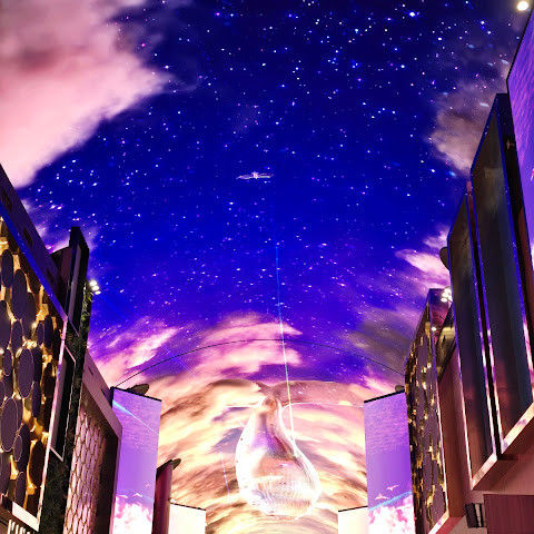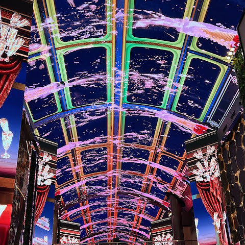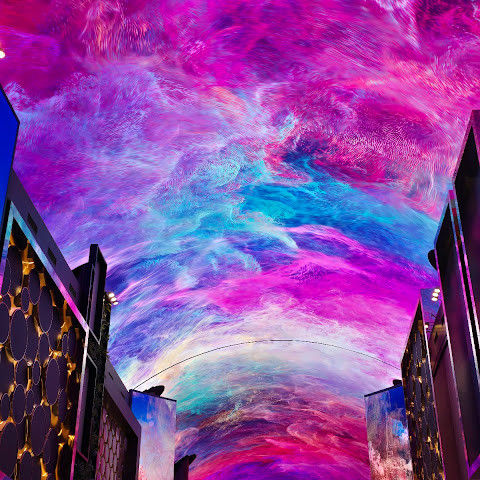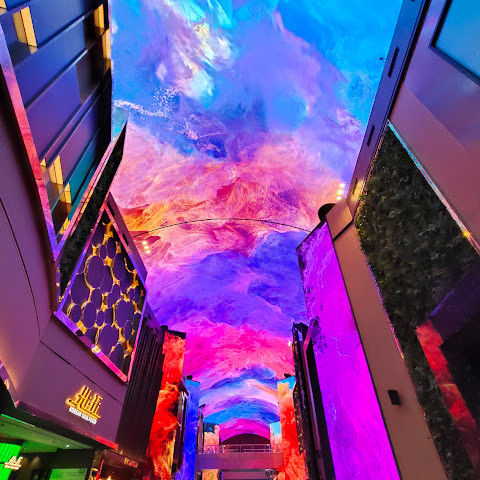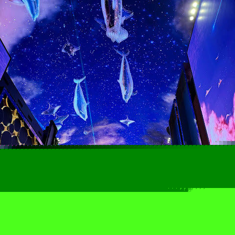카지노 근처에 있는 유명한 오로라, 이 천장 프로젝터의 디지털 아트 쇼는 시간에 한 번 페이스로 개최됩니다.