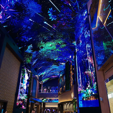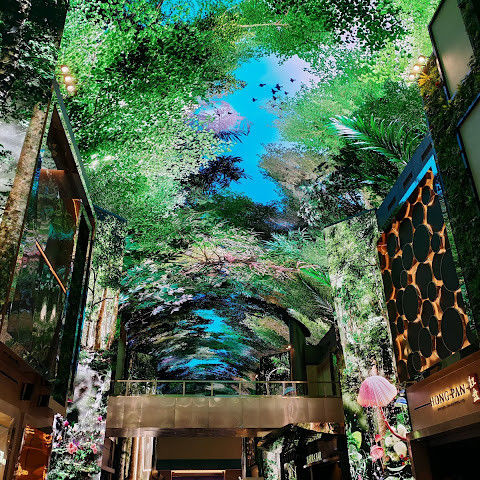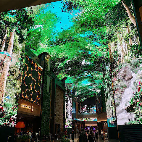 방문하기 좋은 멋진 쇼핑몰이에요. 오아시스 푸드코트에서 4만 원 쓰면 주차가 하루 종일 무료예요. 오로라 쇼는 이제 매시간 상영됩니다. 로툰다 챈들러는 2025년 9월부터 고장 났어요.