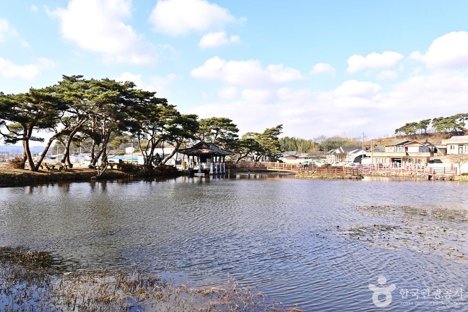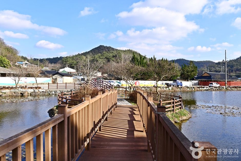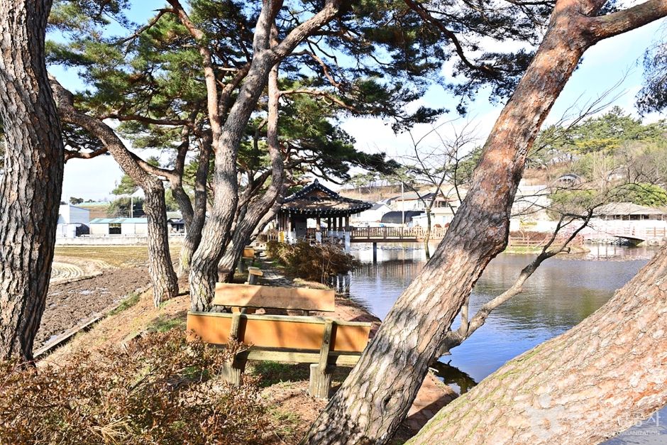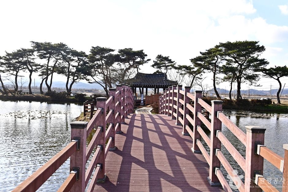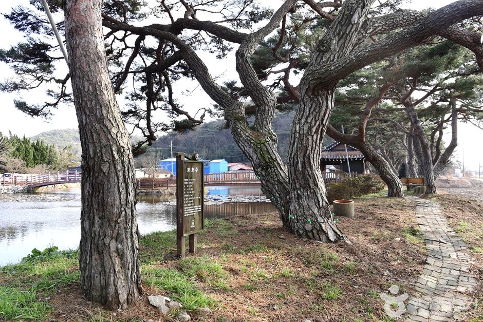 원곡제 주변이 걷기 좋은 산책길로 잘 조성되어 주변 숲과 어울리며 원곡제에 피어나는 아름다운 연꽃과 어리연들의 모습은 마을 숲의 모습을 더욱 아름답게 보이게 한다. 원곡제를 중심으로 왼쪽에는 송아지 형상의 숲이 오른쪽에는 어미 소의 형상을 한 숲이 있어 두 곳을 이어주는 젖줄의 역할을 하는 듯하다. 원곡제 중심에는 작은 섬이 있고 그곳으로 다리가 놓여 있는데 이 다리 위에 서면 마을의 아름다운 풍경이 한눈에 들어온다. 함평을 방문한다면 아름다운 이곳 마을 숲을 방문해 보면 좋을 것이다. |
