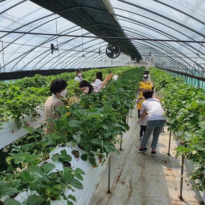 파란 대문이 돋보이는 대형 유리온실에서는 딸기를 재료로 한 음료를 판매한다. 온실 옆 야외에 따로 마련된 대형 비닐 하우스에는 보기에도 탐스러운 딸기들이 주렁주렁 열려있다. 체험객에게는 500g 용량의 투명 플라스틱통과 직접 딸기를 딸 수 있는 30분의 시간이 주어진다. 체험 중에 시식도 함께 즐길 수 있다는 점에서 재미를 더한다. 딸기 체험 농장은 12월에 시작해서 이듬해 6월까지만 운영한다. 딸기 수확 체험 외에 다른 다양한 체험 수업도 있으니 아이들과 함께 방문해보는 것도 좋다. 같은 농장에서 털보셀프바베큐도 운영중에 있다.