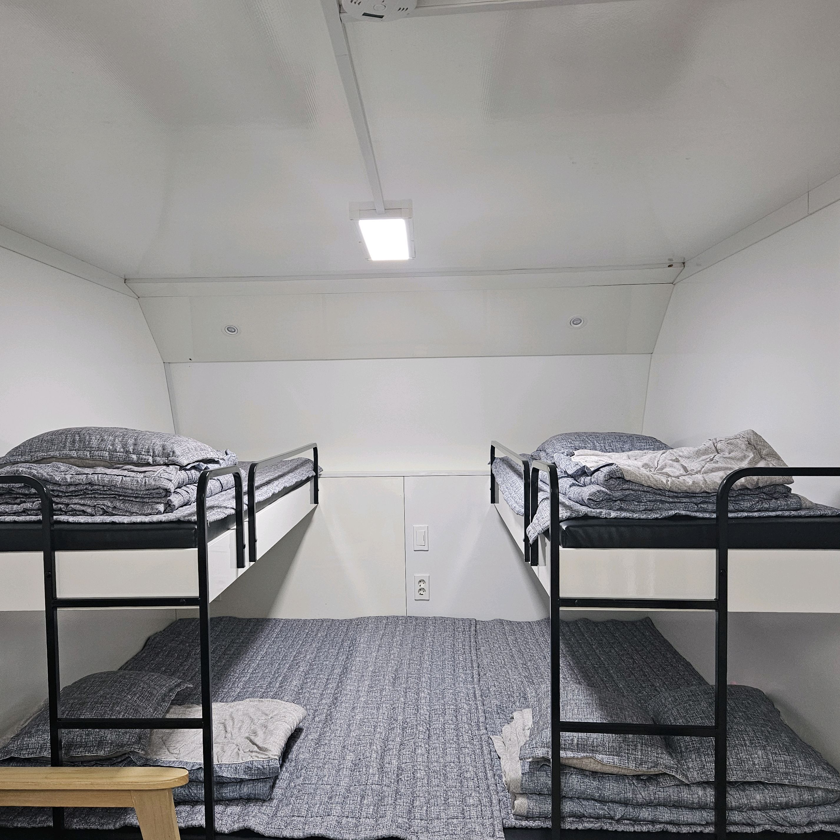친구들이랑 놀려고 가평글램핑장 왔는데 전망이 좋다고 해서 이쪽으로 왔습니다. 일층에는 밥 먹을 수 있게 되어있고 이층은 3-4명 정도 잘 수 있는 침실입니다. 에어컨이나 기본적인 옵션 모두 있어 불편함이 없고 위아래층 모두 산을 바라보는 방향이라 뷰맛집입니다. 재미있게 놀다갑니다👍.