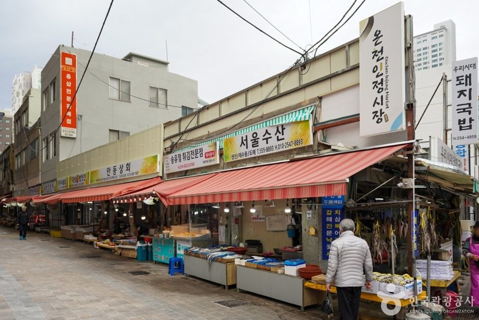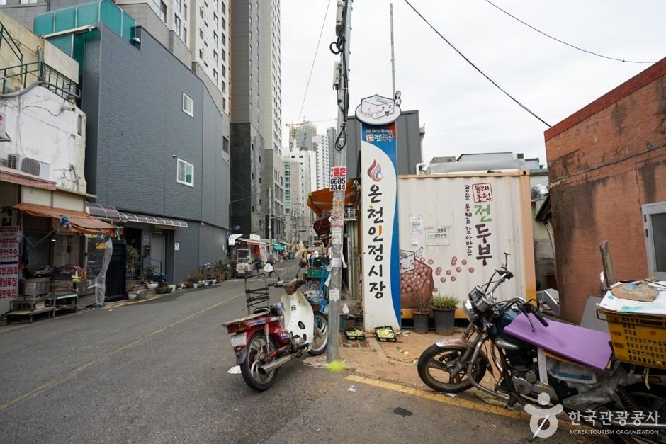 온천시장은 오래된 전통재래시장으로 부산의 유명한 온천지구인 동래온천장에 위치하고 있다. 오래전부터 시장이 형성되어 운영되어 오던 곳으로 지금은 현대화되어 지붕 가림막도 설치되어 있어 비가 와도 장사를 할 수 있도록 되어 있다. 온천시장은 다른 재래시장과 마찬가지로 다양한 먹거리 들을 판매하고 있으며, 부산의 전통 있는 음식인 어묵과 건어물, 야채 등을 판매하고 있는 곳이다. 온천시장에는 온천지구답게 족욕장이 설치되어 있어 족욕체험을 할 수 있는 곳이므로, 방문 시 수건을 챙겨 가야 족욕체험을 할 수 있다. 온천시장은 맛있는 먹거리와 구수한 부산의 사투리를 들을 수 있는 정겨운 시장이다.