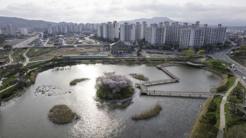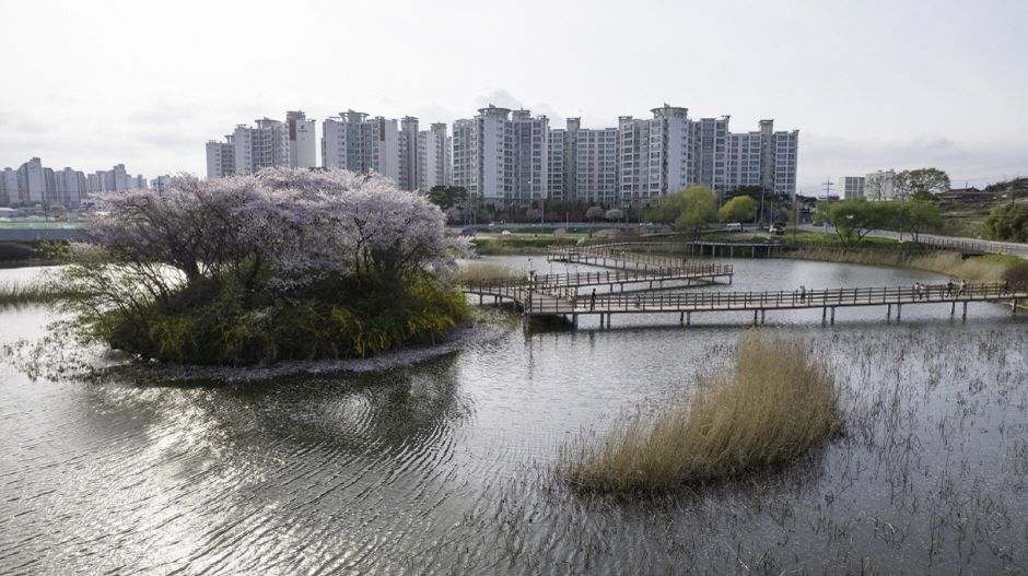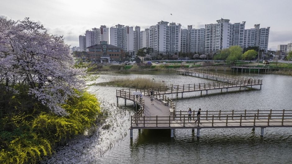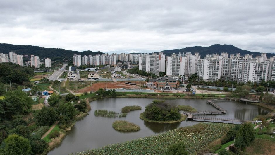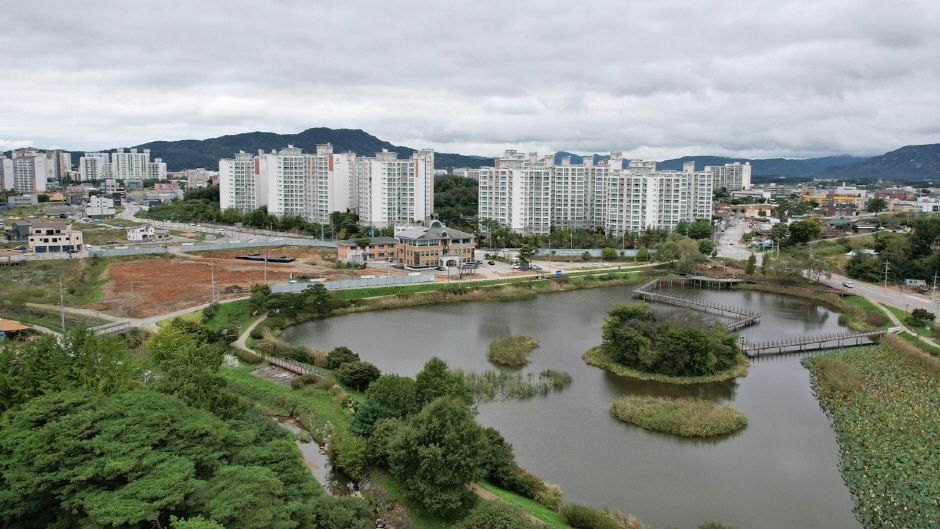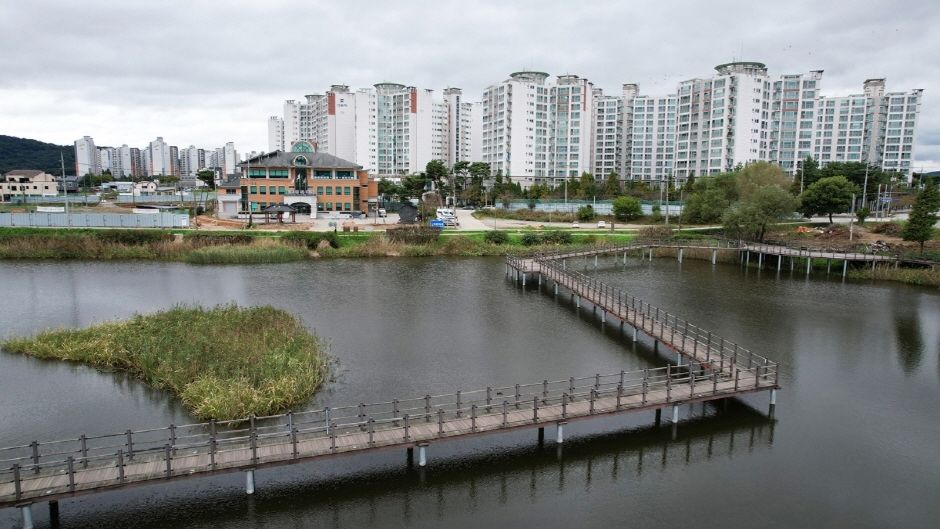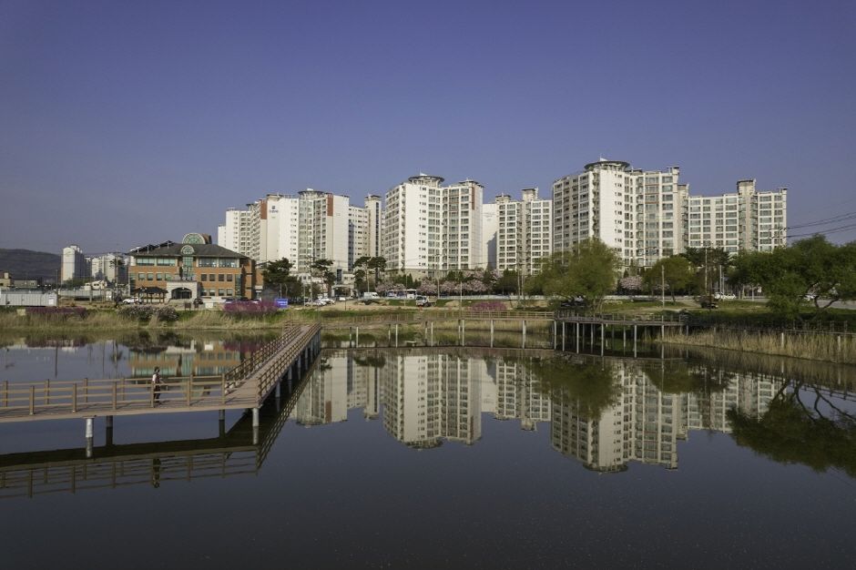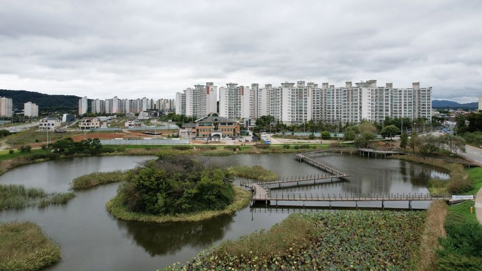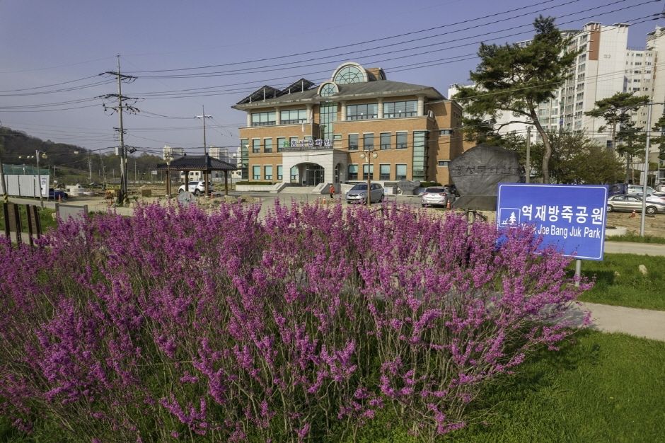 이곳은 잠사를 위한 얼음창고 및 농업용 저수지로 사용되었으며 군민들의 여름 치기 등 추억이 서린 휴식지로서 현재 근린공원으로 지정되어 있다. 역재방죽은 생물종 다양성이 풍부한 오래된 소생물권 습지로서 자 연생태적 가치에 주목을 받고 있다. 생물분포는 9목 27과 60여종 이상의 곤충, 8목 17과 26여종의 조류 27목 43과 86종의 식물(수생식물 6목 6과 7종, 육상식물 21목 36과 79종) 등이 서식되는 것으로 조사되었습니다. 특히 멸종 위기 종 야생식물인 가시연꽃(환경부 지정 식57호,산림청 지정 보호 1순위)은 한반도 최북단 서식지이고 밀적도에서 한국 내 최대 규모일 가능성이 높습니다. (이유미 박사, 산림청) 또한 방죽 중심의 개섬은 귀중한 문화자산으로 완결성이 높은 의견(義犬)설화가 전해져 내려온다. 한편 1992년도 충청남도 운전면허시험장으로, 1997년도 홍성청소년수련관 부지로 매립계획이 시도되었으나 시민환경단체들의 노력으로 백지화되었으며 현재 주민들과 함께 역재방죽 생태공원 조성 사업이 추진되고 있다.
