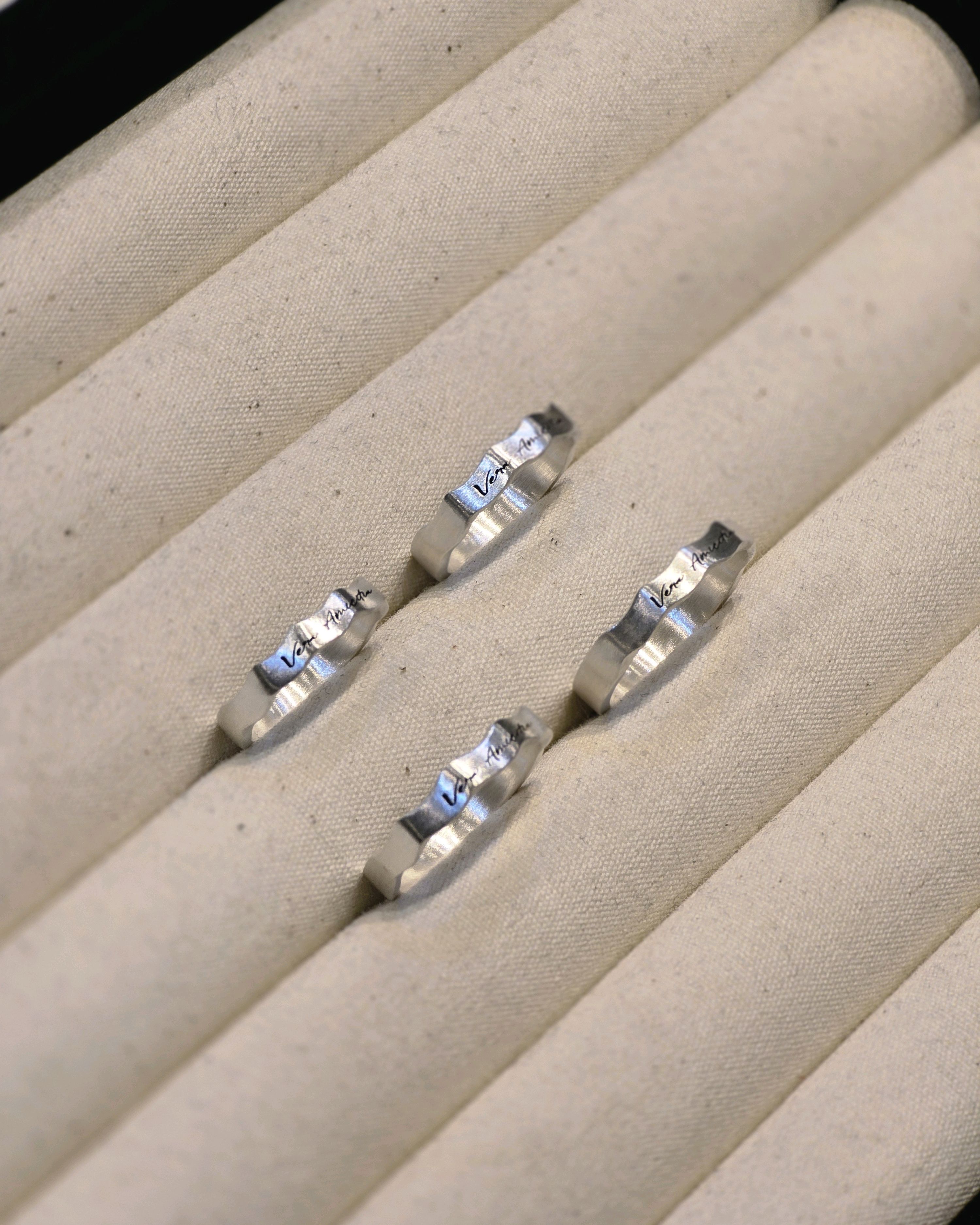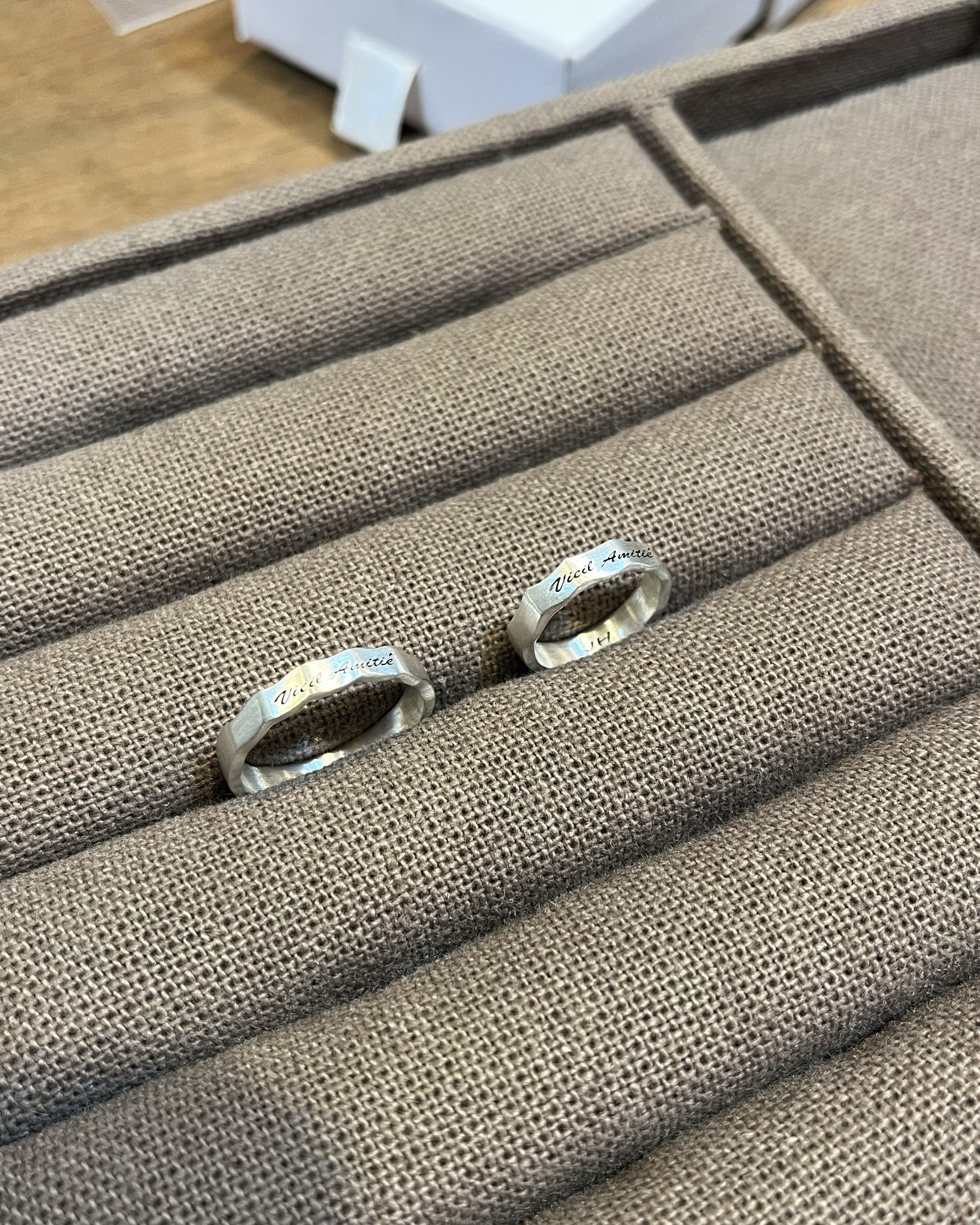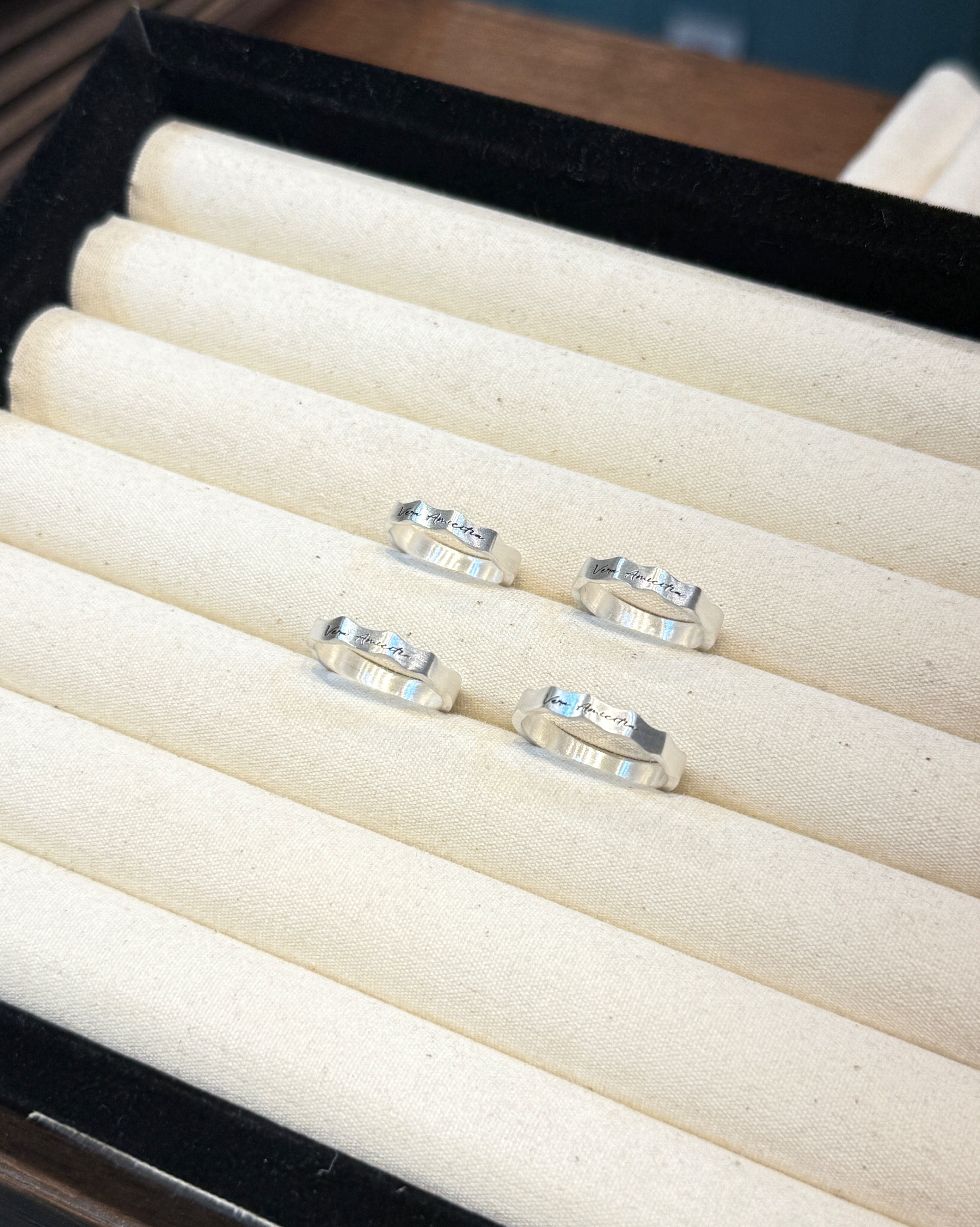 친구들끼리 우정 반지를 위해서 처음으로 반지 공방을 와봤는데 너무 만족해요! 급하게 연락드린 건데 친절하게 맞이해주셔서 감동이었습니다. 똥손이라 반지가 안예쁘게 나올까봐 걱정했는데 선생님께서 잘 마무리해주셔서 덕분에 예쁜 우정링이 나왔어요! 폰트 고르는데까지 열심히 안내해주셔서 정말 감사했어요!🤍
