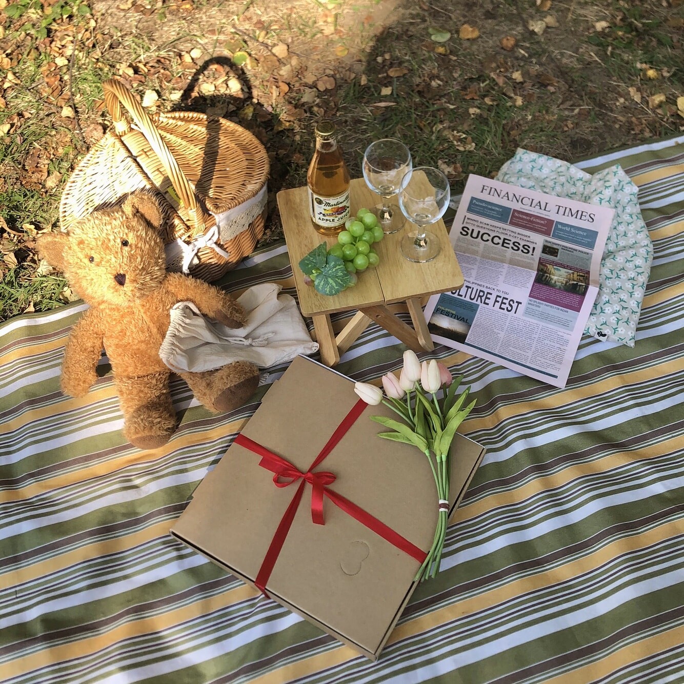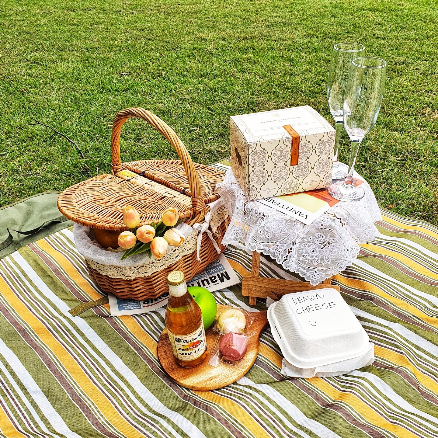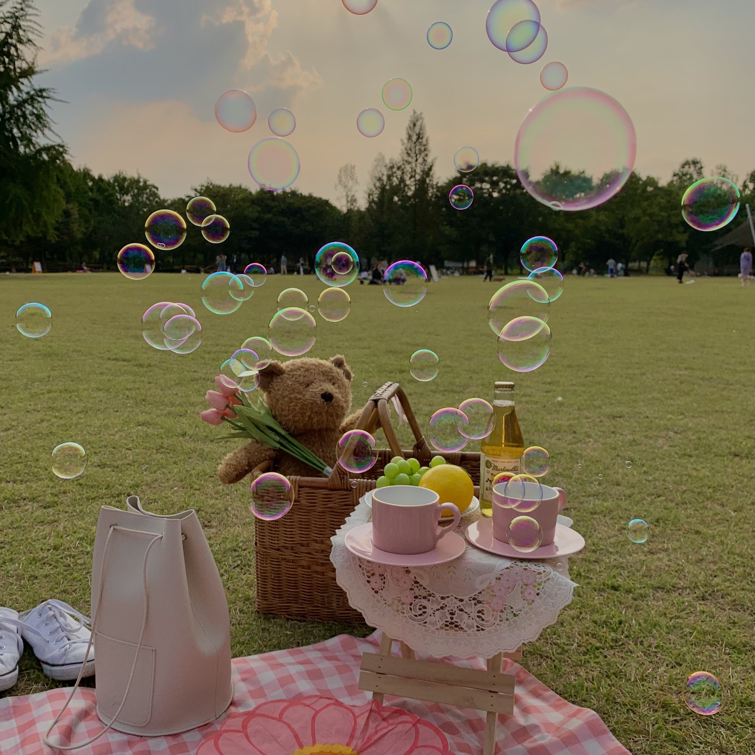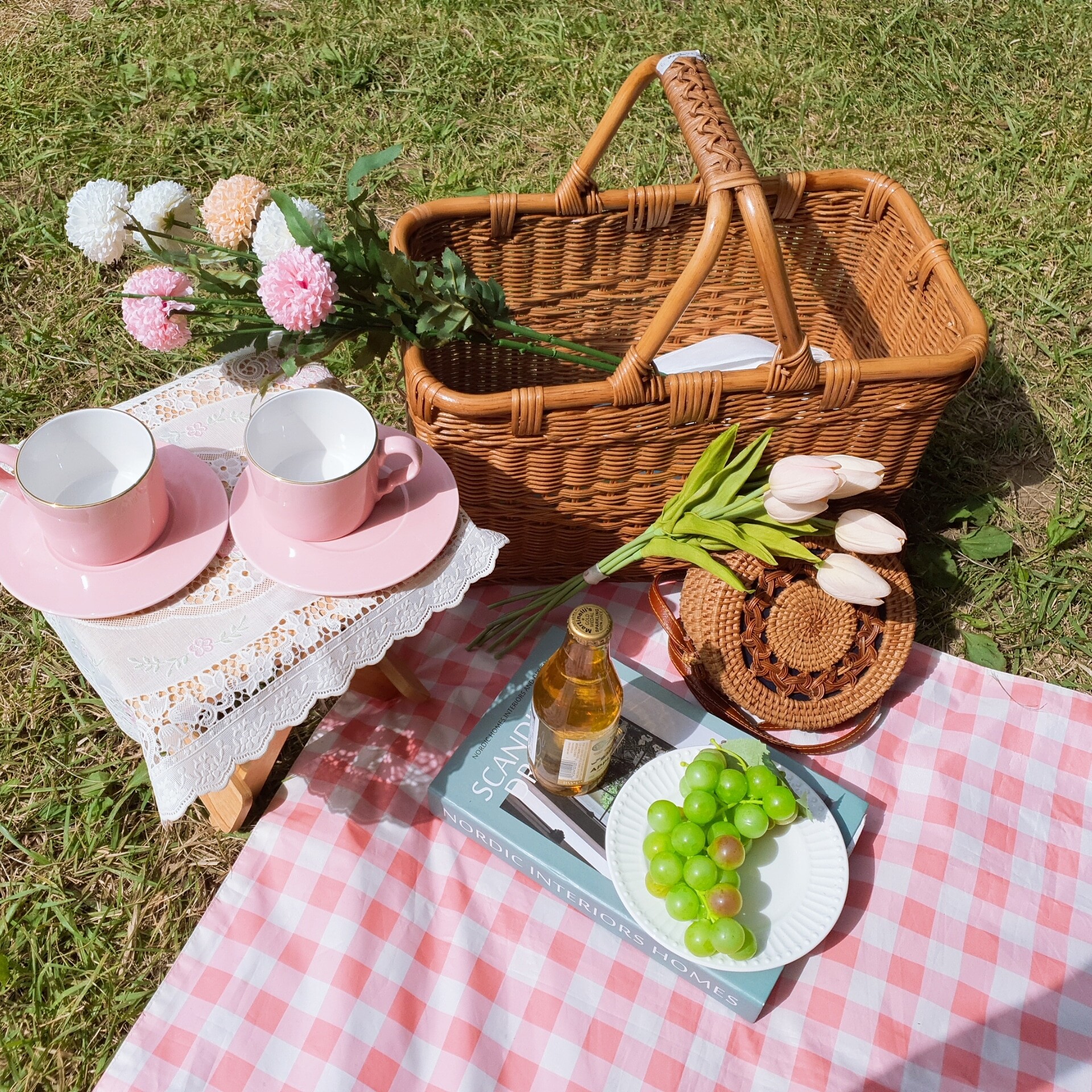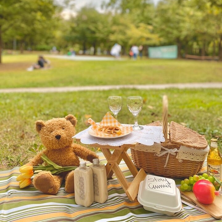 대여 가능한 피크닉 세트로는 소녀 세트, 핑크 세트, 베이지 세트, 레트로 세트, 돗자리와 테이블 세트 등이 있다. 각 세트마다 대여 품목이 상이하기 때문에 예약 시 확인해야 한다. 피크닉 라탄 바구니, 원목 접이식 테이블, 테이블 매트, 돗자리, 커피잔 혹은 와인잔, 앞접시 등은 모든 세트의 기본 구성품이다. 그 외에 비눗방울, 목베개, 머그컵, 담요, 블루투스 스피커와 삼각대, 접이식 테이블, 보조배터리, 거울, 에어매트, 조화, 캠핑의자 등은 추가로 대여할 수 있다.
