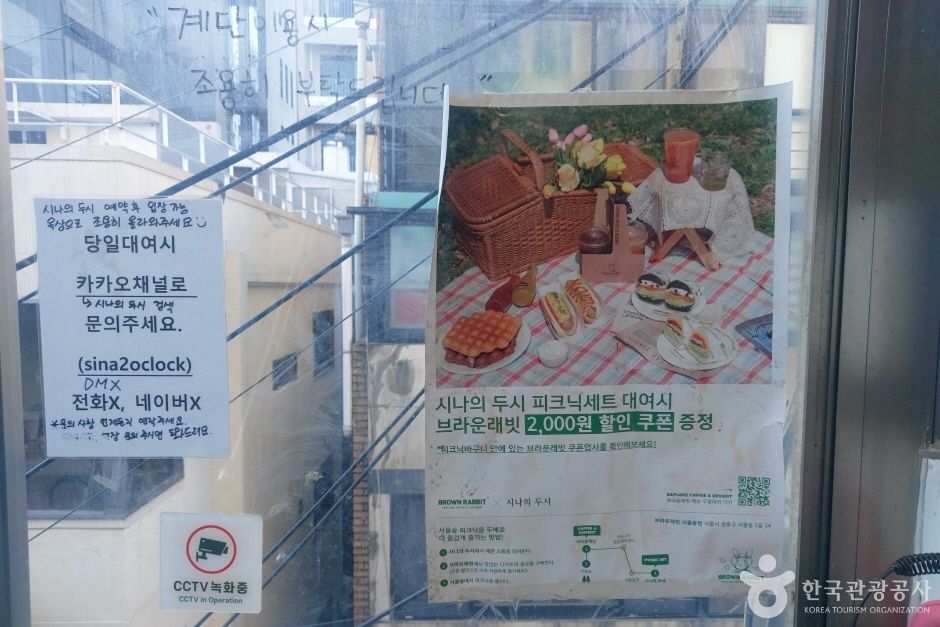 시나의두시 피크닉은 서울숲 피크닉 용품 대여업체이다. 서울숲 2번 출구에서 걸어서 10분 이내로 갈 수 있는 곳에 무인 창고가 있다. 비대면으로 대여가 진행되므로 사용 당일에 비밀번호를 알려준다. 핸드카트도 대여가 가능해서 예약 물품들을 넣고 끌고 갈 수 있다. 당일 대여도 가능하며, 예약문의는 SNS 채널을 통해 확인해야 한다.