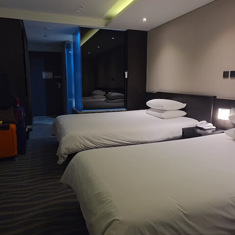 새벽 비행기로 도착했습니다. 공항에서 600번 버스를 타고 한 정거장 떨어진 썬 호텔까지 갔는데, 호텔까지 걸어서 3분 정도 걸렸습니다. 정말 편리했습니다! 다른 후기에서 언급했듯이 프런트에 짐 보관에 대해 문의했는데, 안경 쓴 남자가 매우 불친절했습니다. 그냥 한 곳만 가리키고는 내내 참을성이 없었습니다. 프런트 데스크가 붐비지 않았는데 왜 그렇게 불친절했는지 이해가 안 갑니다!