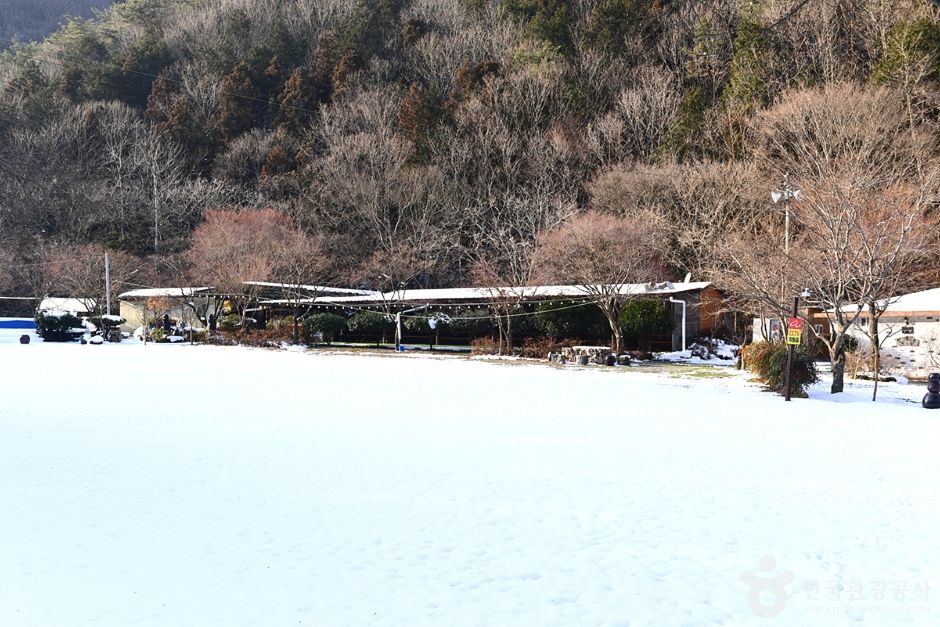 상록수산장은 이 용흥사계곡에 위치한 촌닭백숙 맛집으로 계곡물에 발을 담그고 먹는 백숙맛이 일품이다. 또한 별도 요금을 내면 이용할 수 있는 대형 수영장에서 안전한 몰놀이를 할 수 있고 수영장 옆으로 그늘 천막에 평상이 설치되어 있어 아이들의 물놀이를 지켜보면서 편안한 마음으로 여름을 즐길 수 있다. 계곡물은 청정지역 1급수라 물이 깨끗하고 수심도 얕아서 아이들이 놀기에 적당하다. 반려동물도 동반 가능한 곳이다.