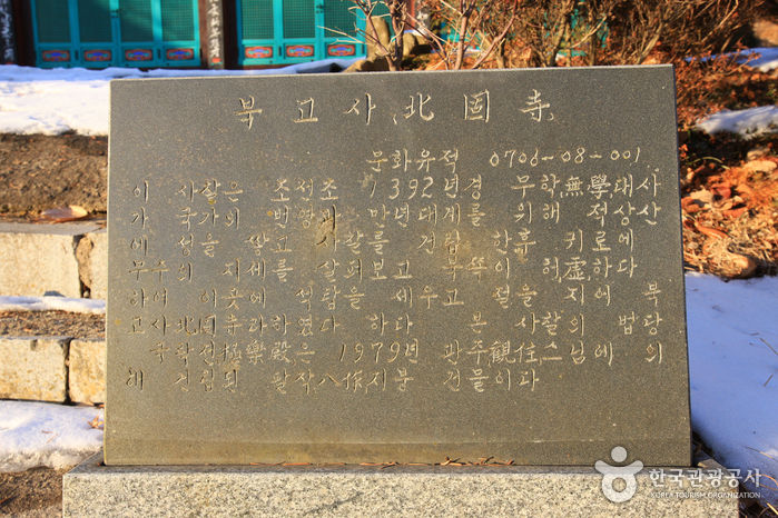 북고사는무주 읍소재지 뒷산인 향로산 중턱에 자리한 사찰로서, 대한불교조계종 제17교구 본사 금산사의 말사이다. 북고사는 본래 고려 공민왕 때 경월사로 창건되었고, 조선 초기 새 왕조의 꿈을 펼치던 무학대사에 의해 새롭게 태어난 절이다. 1392년 이성계의 조선 개국을 위해 새 도읍지를 찾던 중, 천혜의 절경 무주를 앞에 한 무학대사는 천하의 복지임에 감탄하였다. 적상산과 남북으로 마주한 향로산의 터가 허약함을 알고 그곳의 절에 탑을 세우고 절 이름을 [북고]로 개칭하여 무주를 비보케 함으로써, 무주를 복되게 만들고 강역을 청정하게 지킬 수 있도록 하였다.