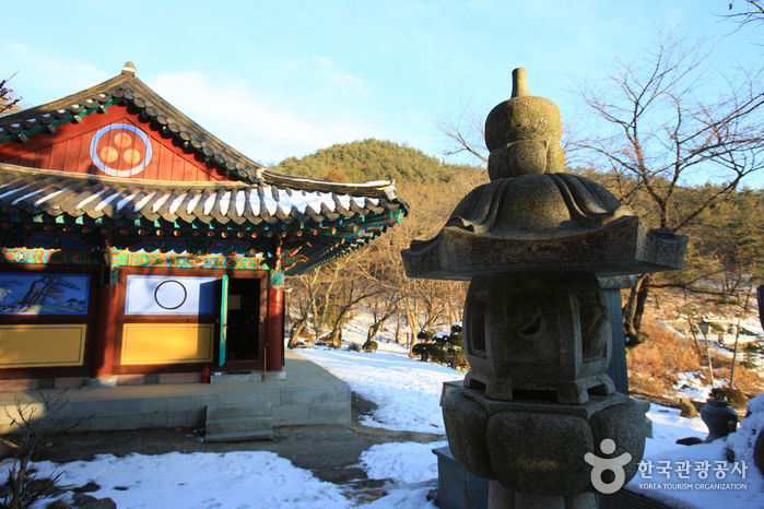 현재는 극락전을 중심으로 뒤편으로 산왕당과 칠성당이 배치되어 있고, 극락전 서편으로는 석탑과 요사가 있다. |
