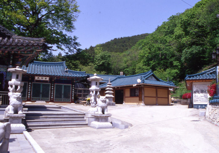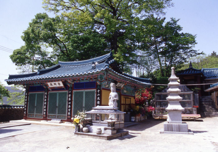 송덕암은 길 가에서 쉽게 찾아들어가지만, 들어가 보면 사찰의 전체 모습을 한 눈에 파악하기 어렵게 되어 있다. 들어가는 입구부터 석비와 석등, 7층석탑 등의 석물이 참 많구나 싶을 정도로 여러 개가 놓여 있다.사찰의 중앙에는 석조관음보살입상과 5층석탑이 놓여 있고 그 앞에 복을 비는 공양주들의 촛불이 켜져 있다. 법당인 약사전은 사찰의 중심에서 왼쪽에 배치되어 있고, 그 맞은편과 뒤로는 여러 채의 요사채가 있으며, 계곡을 따라 한참 올라가면 산신각이 위치하고 있다. 이렇게 상왕산 송덕암은 찻길에 붙어 있어서 절집을 찾기는 쉬우나 절집 주변이 번잡해져 자동차소리와 학생소리 등에 염불소리가 묻혀 버리는 그런 곳이다. 사찰에 들어가면 여느 사찰처럼 법당 앞마당이나 탑 주이가 탁 트이는 데 비해, 이곳 암자는 여백 없이 여러 성보유물을 연속해서 배치하고 열거하는 등 전체적으로 오밀조밀한 느낌이 들게 하는 독특한 암자이다. |