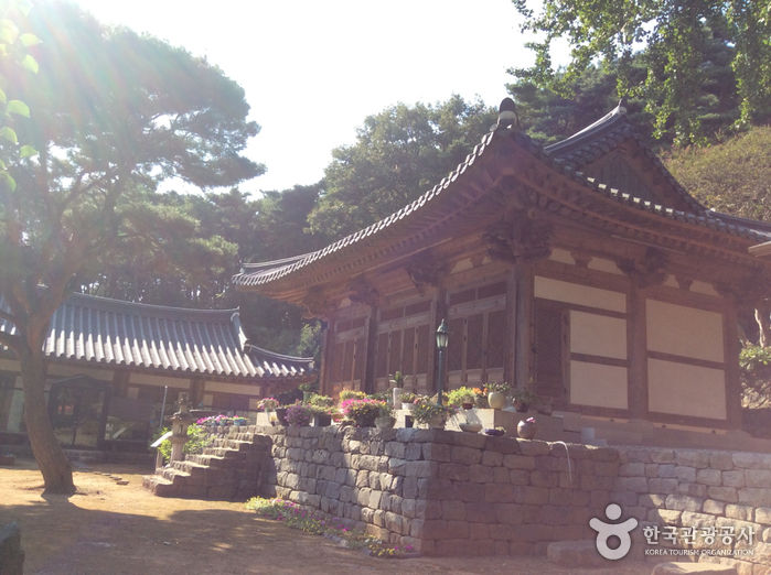 이 사찰은 약 500여년 전부터 다른 곳에 영수암이라는 암자가 있었는데, 100여 년 전에 지금의 위치로 옮겨온 것으로 전해진다. 이곳은 민가를 개수한 대웅전을 중심으로 산신각과 요사채로 이루어진 아담한 사찰이다. 또한 비록 서해안의 낮은 산에 있지만 들어가는 길이 순탄치 않고 숲으로 둘러싸여 제법 산사 분위기가 난다. 대웅전에 봉안된 삼존불 중 목조보살좌상은 2007년에 충청남도 문화재자료로 지정되었다. 대웅전 뒤편에 있는 산신각은 정면과 측면 각각 1칸인 맞배지붕 구조이며, 안에는 독성탱화, 산신탱화, 칠성탱화가 봉안되어 있다. 주변의 빽빽한 대나무숲에서는 바람이 불 때마다 댓잎이 부딪혀 사각거리는 맑은 소리가 풍경소리와 어울린다. 이곳 주변에는 서천시가지의 서천수산물특화시장, 서해안의 갈목해수욕장, 송석항 등의 관광지가 있어 연계하여 관광하기 좋다. |