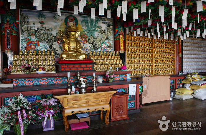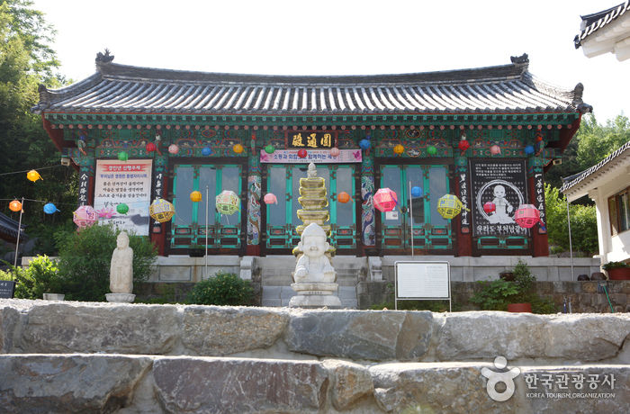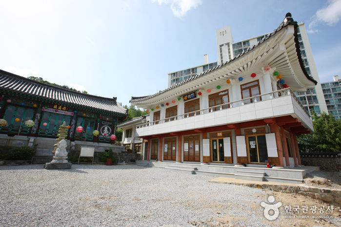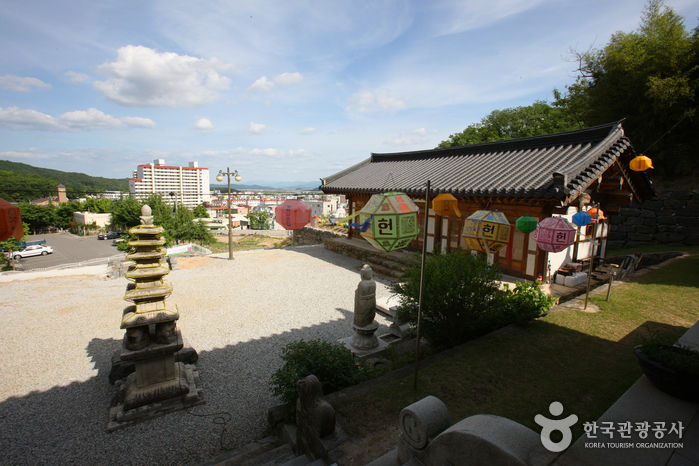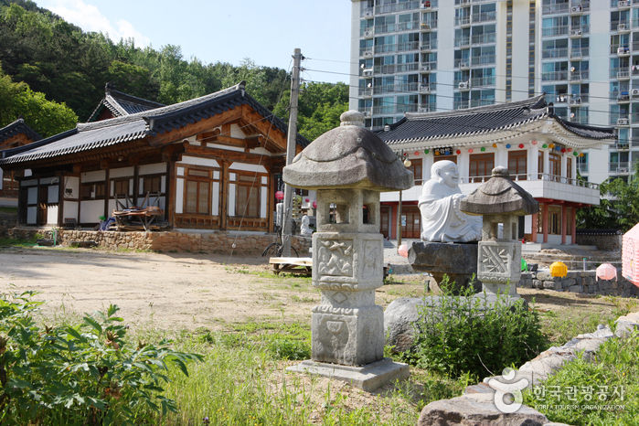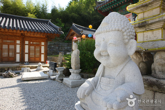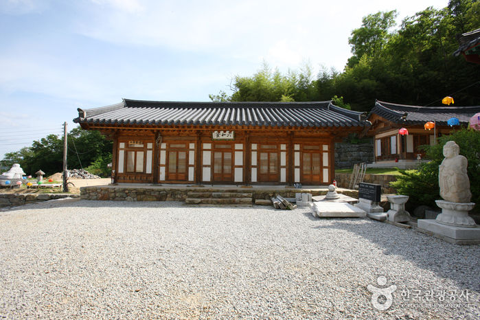 원각사 주 전각인 원통전에 봉안한 목조 보살좌상은 조선시대인 1649년(인조 27)에 조성한 유서 깊은 불상이다. 창건 당시 구미시 무을면의 수다사에서 이운하여 봉안하였다. 보관이 화려하고 조각이 뛰어나며, 1999년 지방문화재로 지정되었다. 1997년 주지 대혜스님이 요사채 4동, 석축, 진입로 공사, 마당 확장 성역화 중창불사를 하여 지금에 이른다. 절은 산 밑에 위치하지만 마을과 가까이에 있어 법회나 참배가 쉽고 주민들이 저녁 산책을 나와 잠깐이라도 절 마당을 걸어볼 수가 있어 더 없이 좋은 곳이다. 대숲이 아름다운 원통전 뒷길과 망초꽃, 매꽃이 지천으로 피는 아름다운 사찰이며 선산의 8개 리 주민들의 마음의 안식처이기도 하다. |