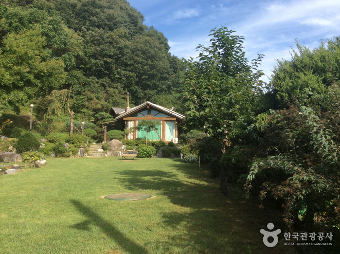 숲속의 별장 같은 느낌이 드는 달빛이 머무는 집 펜션은 잘 가꾸어진 넓은 정원과 그림 같은 전원 풍경 속에서 맑은 물 남한강의 저녁 노을을 바라보며 여유와 휴식을 취할 수 있는 곳이다. 게다가 펜션 내부에서도 바깥의 자연 풍경이 잘 들어오도록 배치하고 창을 크게 내었다.
