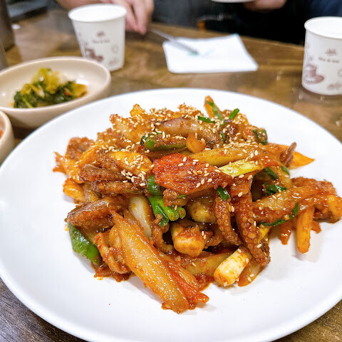 줄이 길고 사람이 많을 것 같았지만, 가게가 넓어서 회전율이 꽤 빨랐습니다. 두 사람이 작은 사이즈의 면과 낙지볶음을 다 먹지 못할 정도였어요 (저는 식성이 좋은 편인데도요). 면은 괜찮았지만 특별히 쫄깃하지는 않았고, 낙지볶음은 그냥 평범했습니다.