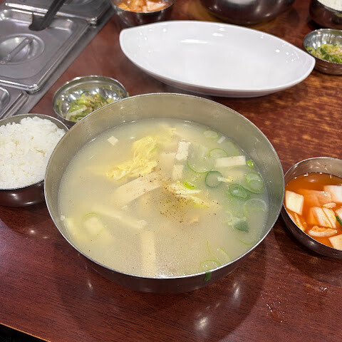 이곳은 줄이 길게 늘어설 정도로 인기 있는 곳이지만, 절대 포기하지 마세요! 메뉴는 간단하고 서비스도 굉장히 빨라서 사람들이 금방 드나들 수 있어요. 국물은 깊고 풍부한 맛이 일품이라 속이 편안해지는 느낌이에요. 곁들여 나오는 반찬들도 국물과 완벽한 조화를 이루어 정말 맛있었어요. 서울의 정통 아침이나 점심을 제대로 즐기고 싶다면 꼭 한번 방문해 보세요!