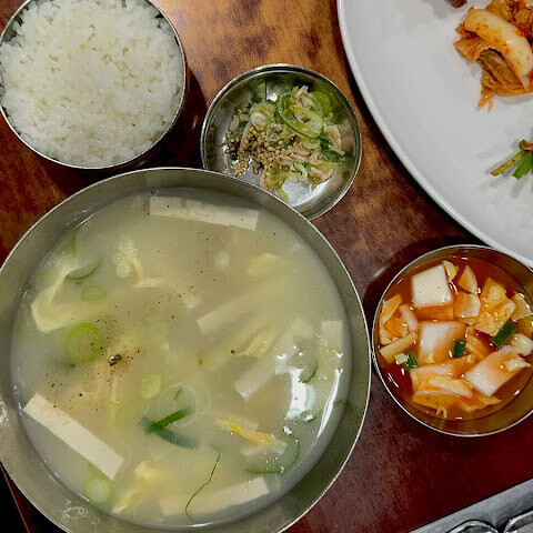【식사】<br>맛있는 푸고쿡이 최고로 맛있습니다.<br>뱃속에 천천히 스며들어 여기에서만 먹을 수 있는 맛이 있습니다.<br>밥 도둑의 아미의 젓갈과 파의 곁들이기를 밥에 섞어 먹으면 최고였습니다!<br><br>【서비스】<br>메뉴가 10000W의 1종류이므로, 자리에 도착하면 판찬과 스프, 밥이 마음대로 나옵니다. 점원과 대화하지 않고 목적의 스프를받을 수 있습니다.<br>통근 전의 샐러리맨도 많이 있었고, 한국의 아침을 느껴졌습니다!<br>신용 OK입니다!